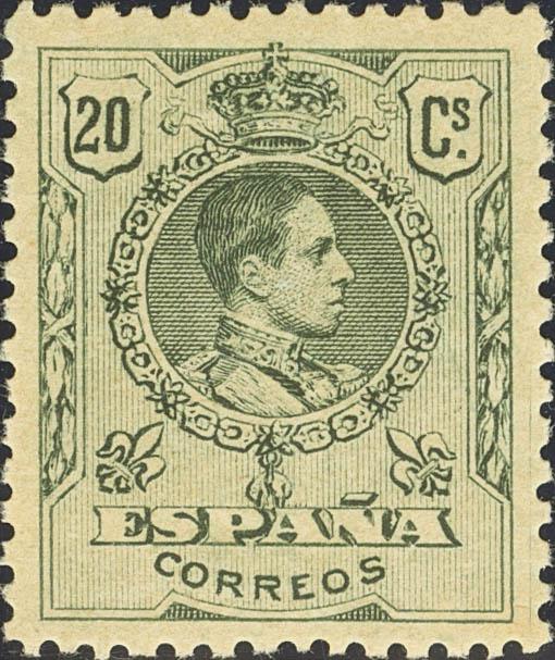 ★★ 272N. 1909. 20 cts verde bronce (centraje excepcional). NºA000000. MAGNIFICO. Edifil 2020: +++175 Euros