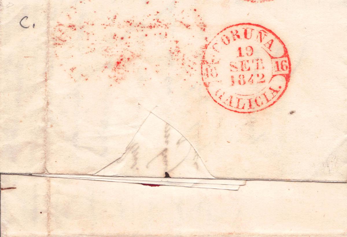 1842. SALAMANCA a LA CORUÑA. Baeza SALAMCª / CAST.LA V., en rojo. MAGNIFICA.