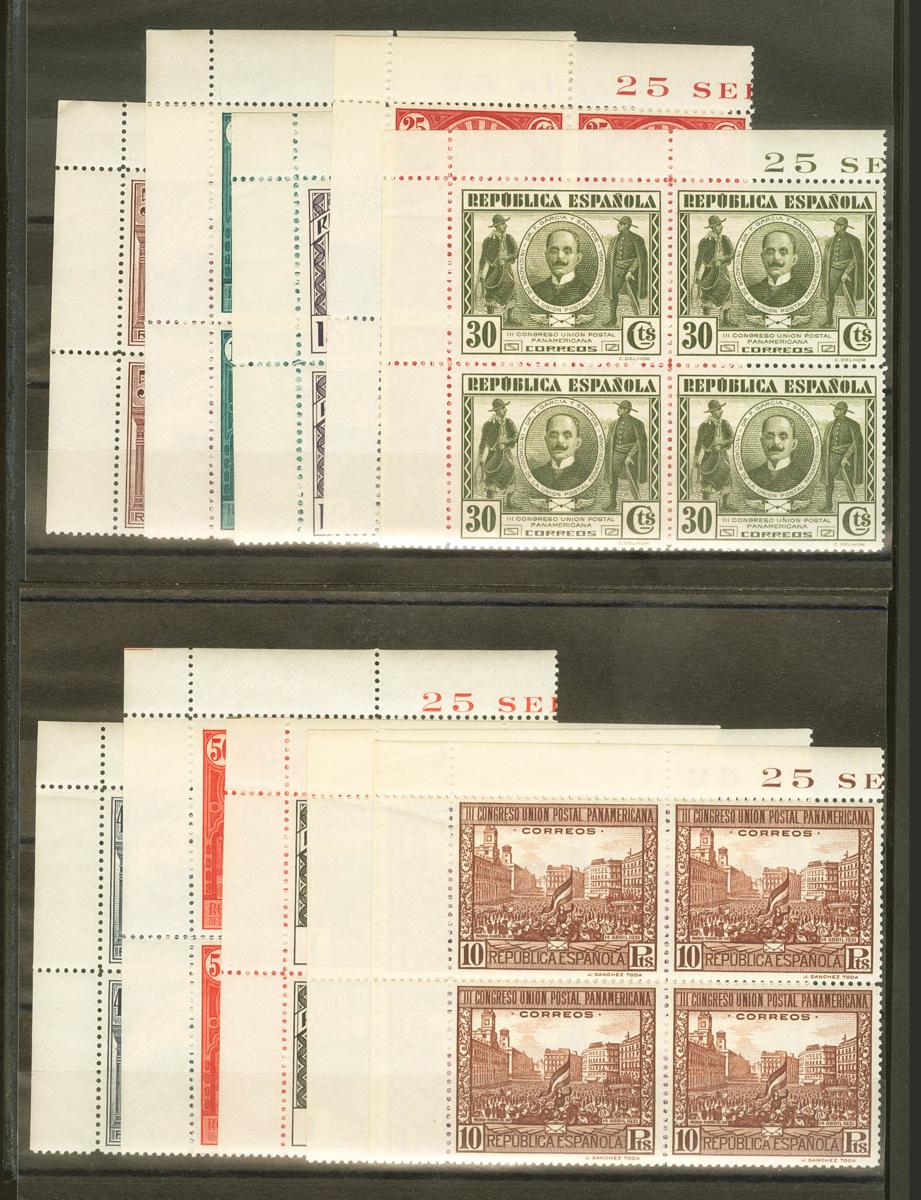★★ 604/13(4). 1931. Serie completa, bloque de cuatro, esquina de pliego. MAGNIFICA Y ENORME ESPECTACULARIDAD. Edifil 2023: ++480 Euros