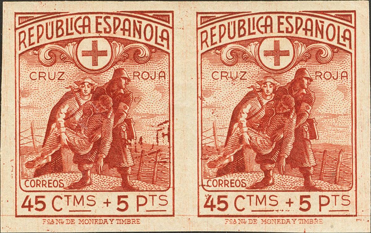 ★ 767s(2). 1938. 45 cts + 5 pts rojo, pareja (invisible señal de fijasellos). SIN DENTAR. MAGNIFICA. Edifil 2023: 346 Euros