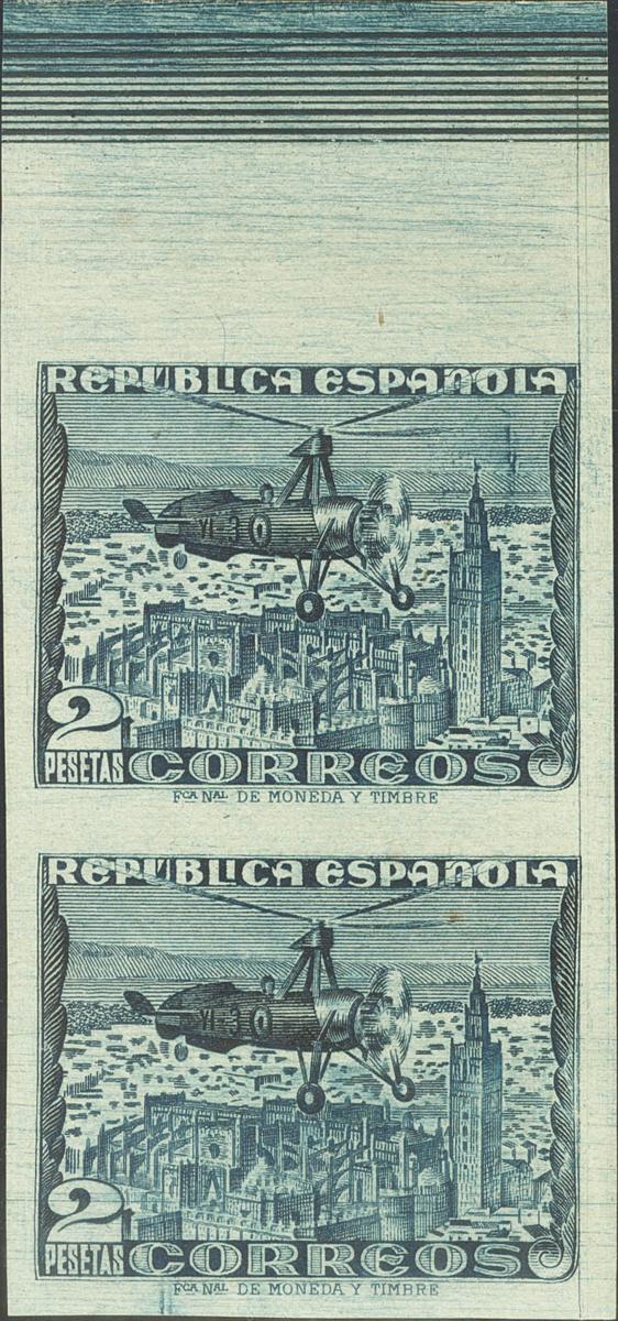 ★★ 769s(2). 1938. 2 pts azul, pareja, borde de hoja. SIN DENTAR. MAGNIFICA. Edifil 2023: +174 Euros