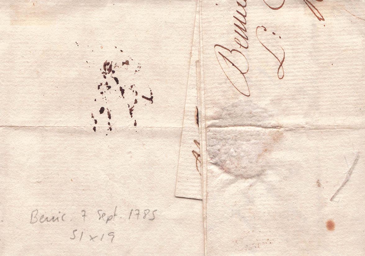1786. BENICARLO a SAN QUINTIN (FRANCIA). Marca BENICARLO, en tinta de escribir (P.E.2) edición 2004. MAGNIFICA Y MUY RARA.