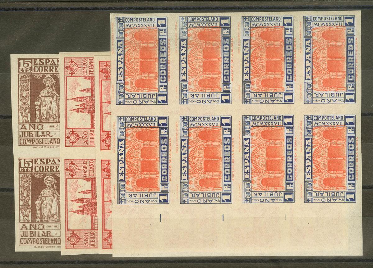 ★★ 833/35s(8). 1937. Serie completa, cuatro valores (incluyendo el 30 cts bermellón), bloque de ocho. SIN DENTAR. MAGNIFICA. Edifil 2021: 2.496 Euros