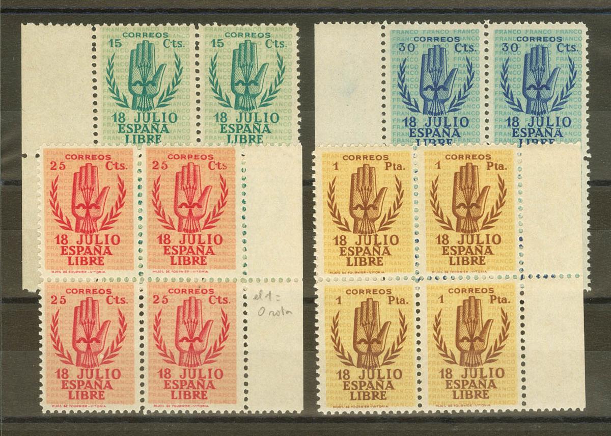 ★★ 851/54(4). 1938. Serie completa, bloque de cuatro. MAGNIFICA. Edifil 2023: 840 Euros