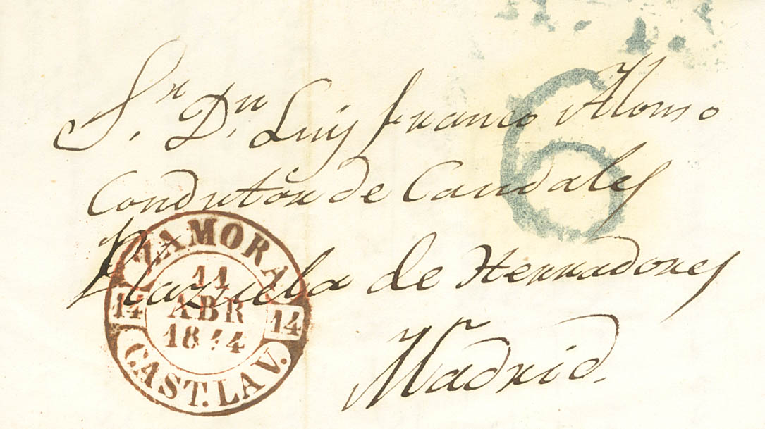 1844. ZAMORA a MADRID. Baeza ZAMORA / CAST.LA V., en rojo. MAGNIFICA.