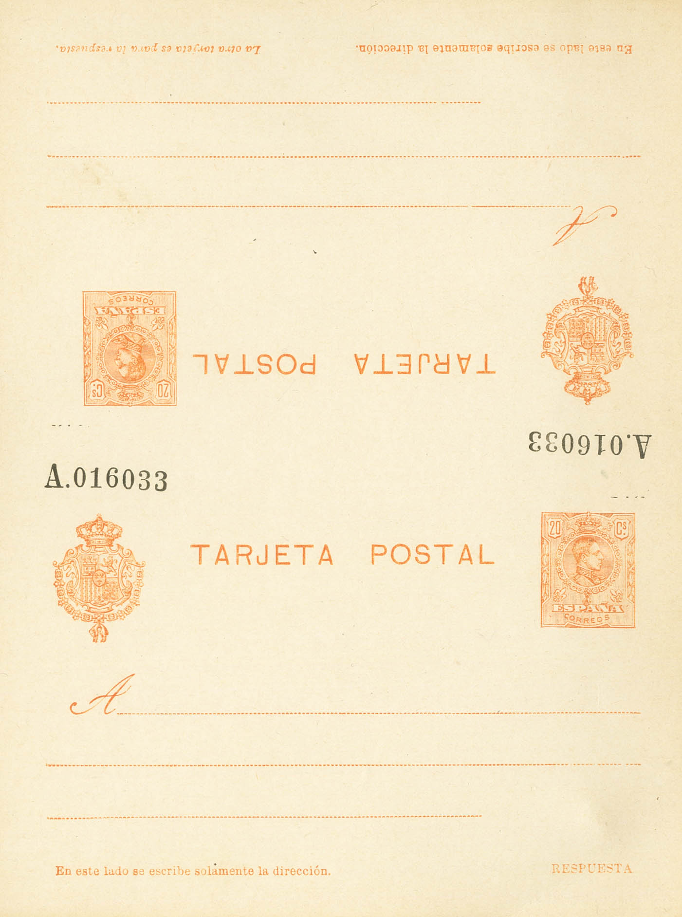 (★) EP52. 1910. 20 cts + 20 cts naranja sobre Tarjeta Entero Postal, de ida y vuelta. MAGNIFICA. Edifil 2023: 112 Euros