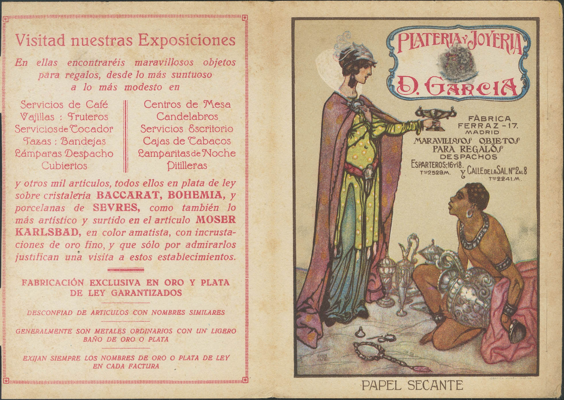 (★) EP492. (1922ca). 5 cts lila sobre Tarjeta Entero Postal Privado PLATERIA JOYERIA D.GARCIA (conservación habitual). MAGNIFICA Y RARA.