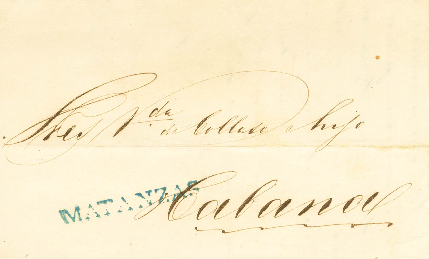 1842. MATANZAS a LA HABANA. Marca MATANZAS, en azul (P.E.3) edición 2004. MAGNIFICA Y RARA.