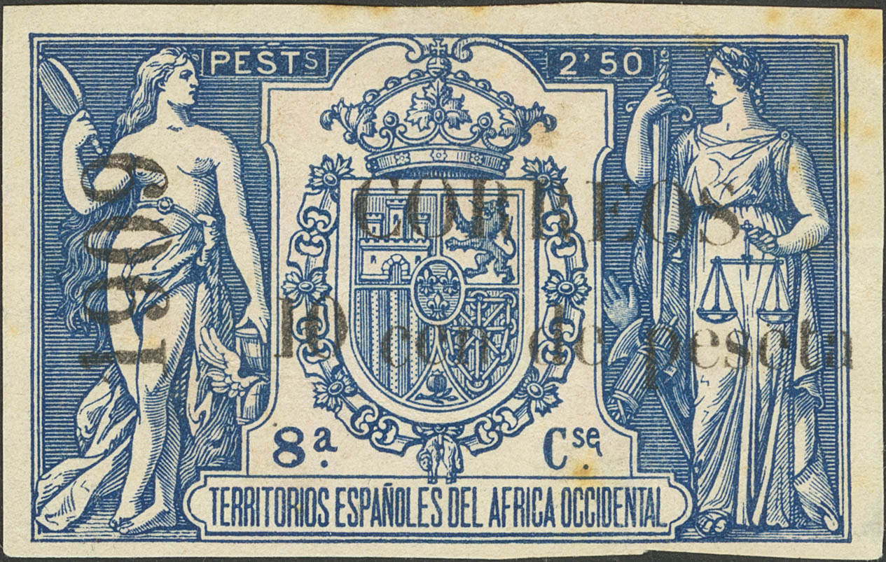 ★ 50L. 1909. 10 cts sobre 2´50 pts (conservación habitual y leve pliegue). BONITO. Edifil 2018: 245 Euros