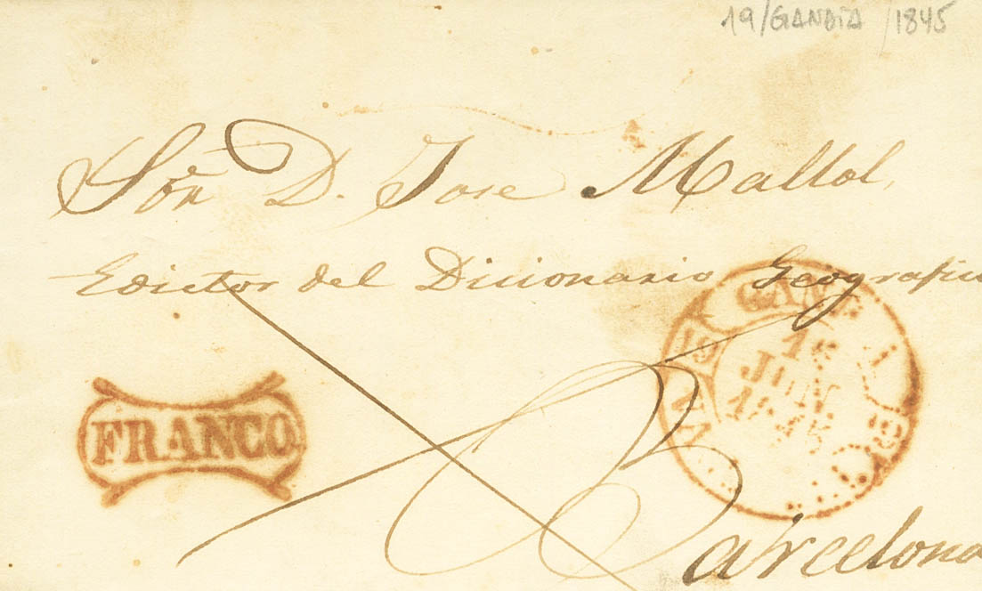 1845. GANDIA (VALENCIA) a BARCELONA. Marca FRANCO, de uso general (P.E.9) edición 2004. MAGNIFICA Y RARISIMA.