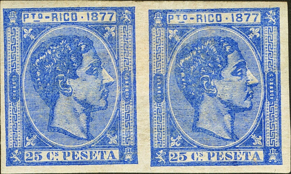 ★ 16s(2). 1877. 25 cts ultramar, pareja. SIN DENTAR. MAGNIFICA. Edifil 2023: 224 Euros