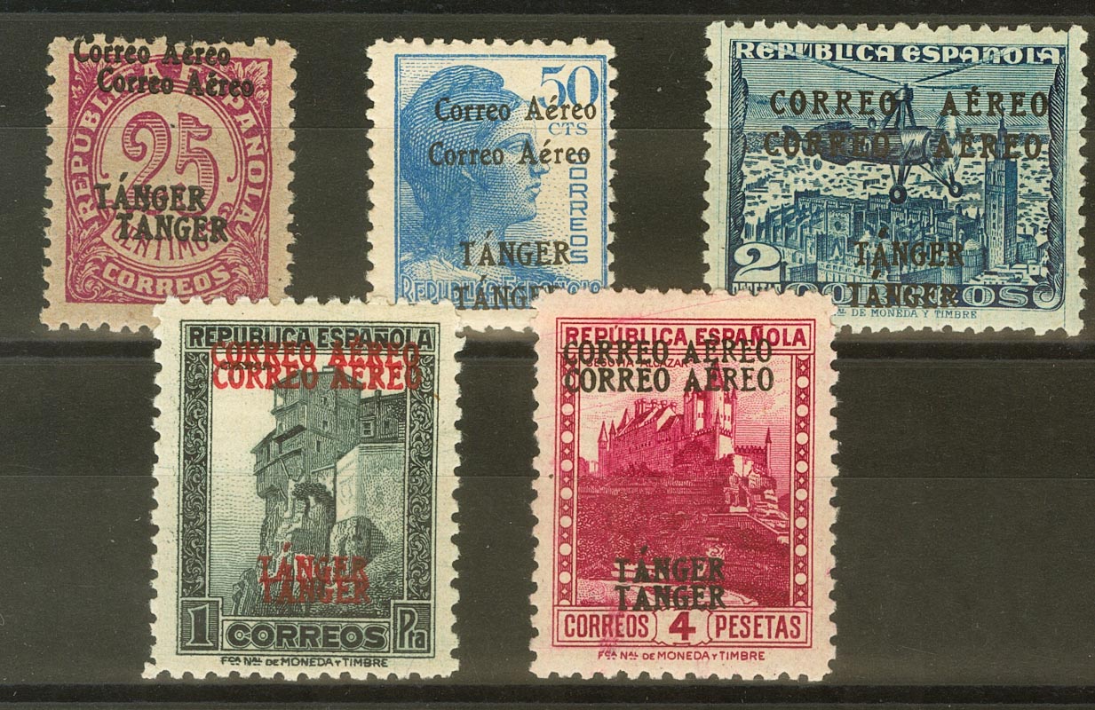 ★ 108/12hh. 1939. Serie completa, cinco valores. SOBRECARGA DOBLE. MAGNIFICA. Edifil 2018: 119 Euros