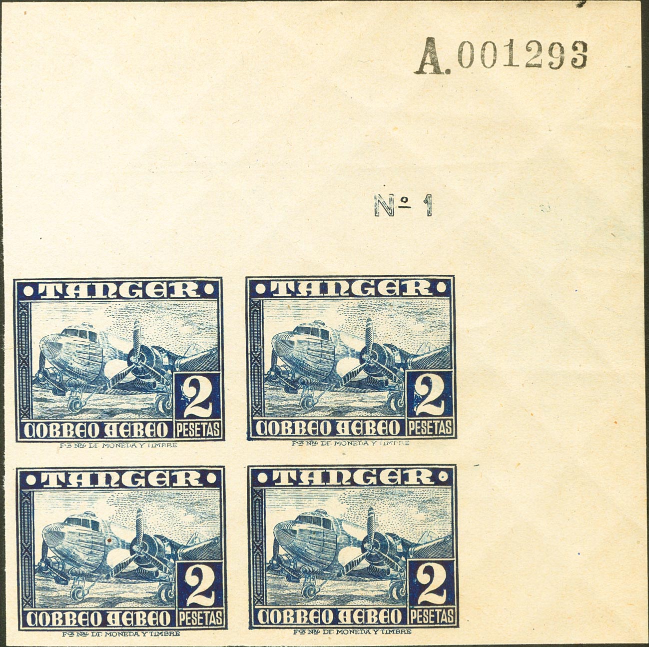 ★★ 176s(4). 1948. 2 pts azul oscuro, bloque de cuatro, esquina de pliego. SIN DENTAR. MAGNIFICO. Edifil 2023: +384 Euros