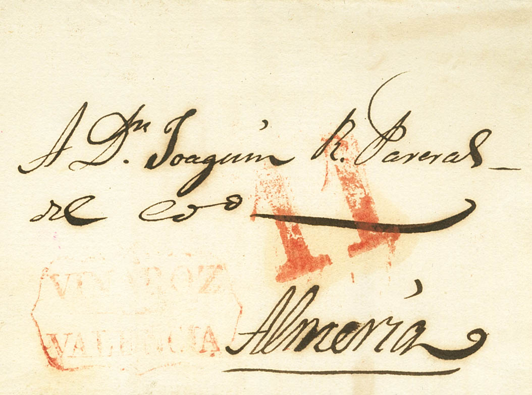 1840. VINAROZ (CASTELLON) a ALMERIA. Marca VINAROZ / VALENCIA (P.E.7) edición 2004. BONITA Y RARA.