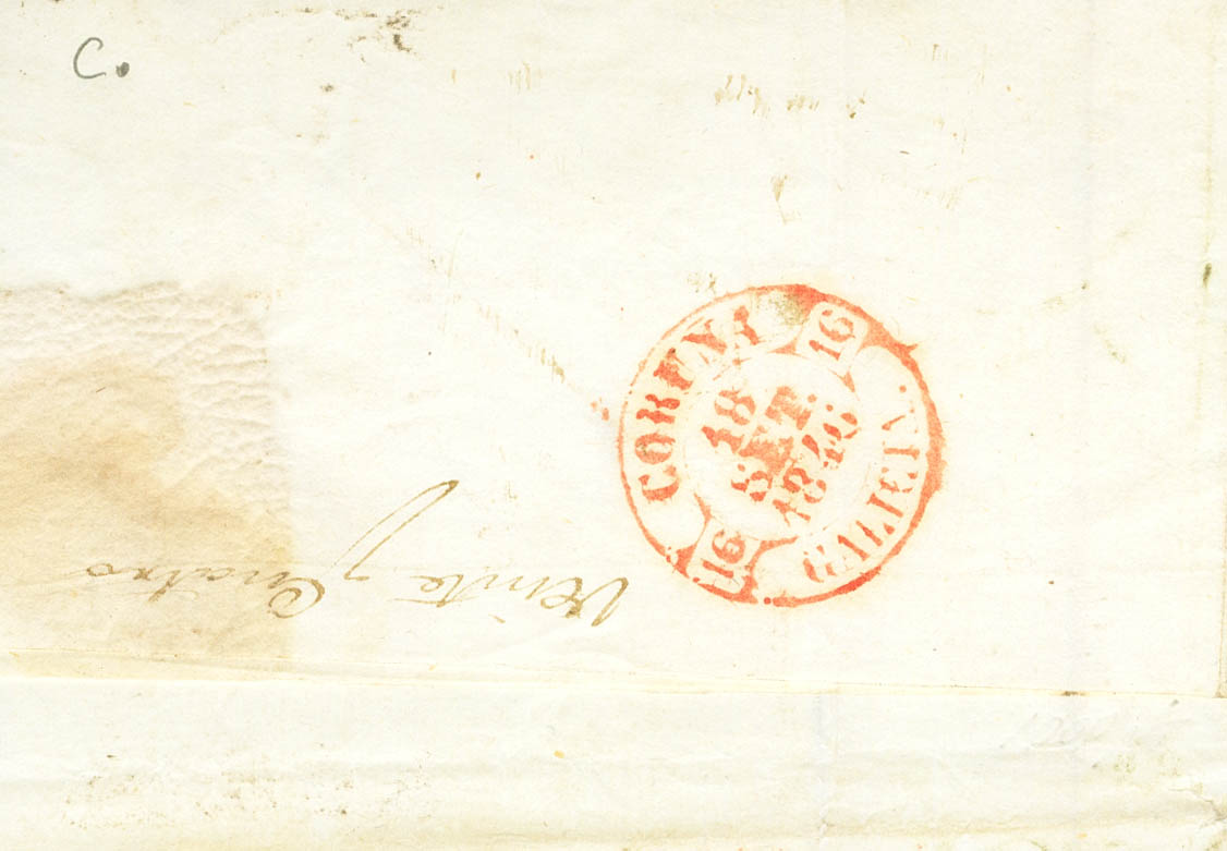 1846. BETANZOS a LA CORUÑA. Baeza BETANZOS / GALICIA, en rojo. MAGNIFICA.