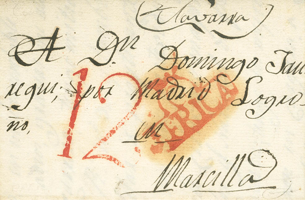 1826. CEUTA a MARCILLA (NAVARRA). Marca C / AFRICA, en rojo de Ceuta (P.E.8) edición 2004. MAGNIFICA Y MUY RARA, ESPECIALMENTE CON ESTE DESTINO.