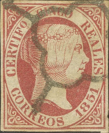 9. 1851. 5 reales rosa carmín. MAGNIFICO.