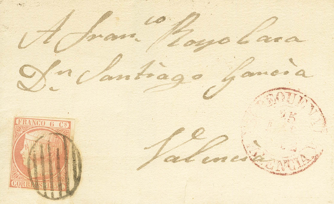 12. 1852. 6 cuartos rosa. REQUENA (VALENCIA) a VALENCIA. MAGNIFICA.