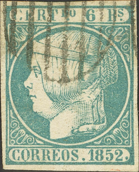 16. 1852. 6 reales azul. Color nítido. MAGNIFICO. Cert. CEM.