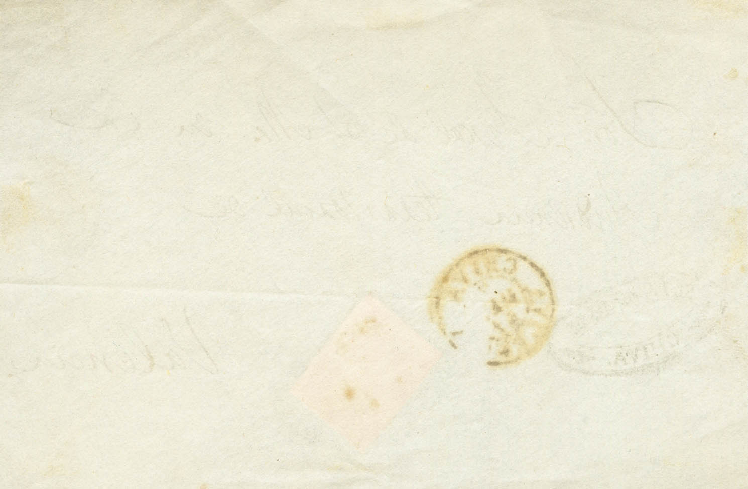 36. 1861. 1 onza. Frente de Plica Judicial de CHIVA (VALENCIA) a VALENCIA. En el frente CHIVA / ALICANTE (fechador Tipo I modificado). MAGNIFICA.