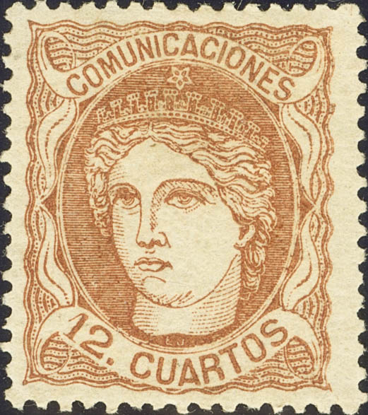 ★ 113. 1870. 12 cuartos castaño rojo. Excelente centraje y color intenso. MAGNIFICO. Cert. CEM.