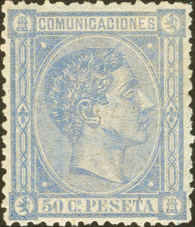 ★ 168. 1875. 50 cts lila. Centraje excepcional. PIEZA DE LUJO. Cert. CEM.