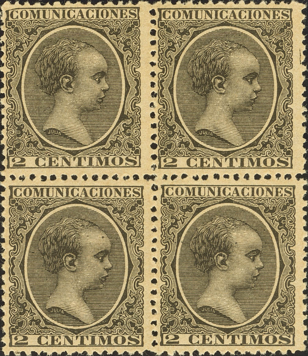 ★★ 214(4). 1889. 2 cts negro, bloque de cuatro. MAGNIFICO. Edifil 2020: ++168 Euros
