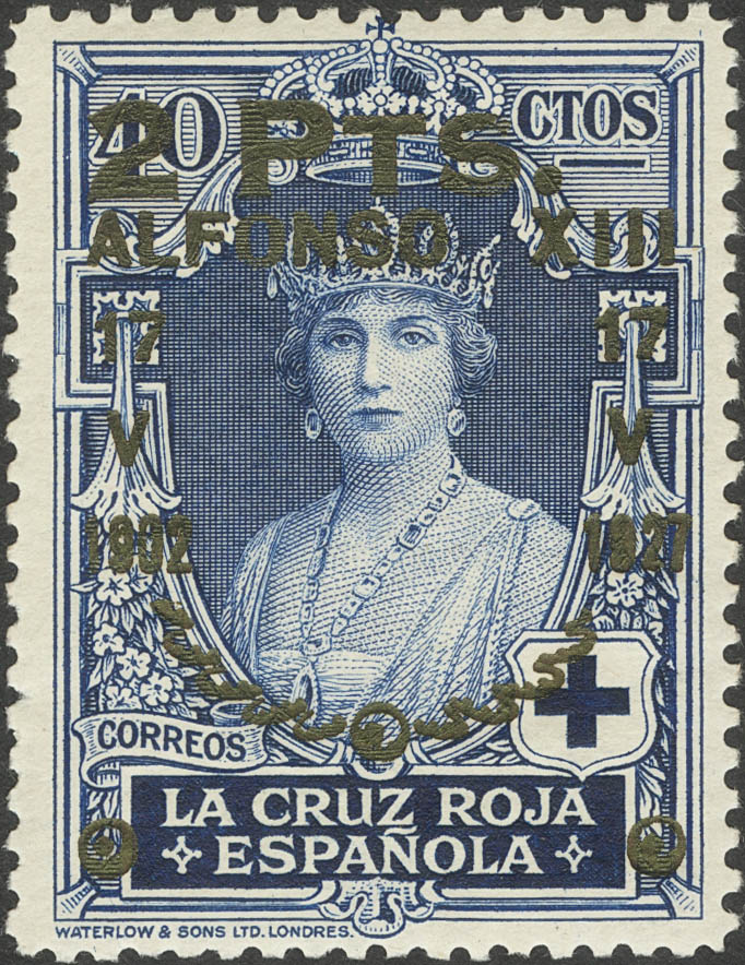 ★★ 383hcc. 1927. 2 pts sobre 40 cts azul. Variedad CAMBIO DE COLOR EN LA SOBRECARGA, en negro. MAGNIFICO Y RARO. Edifil 2020: +225 Euros