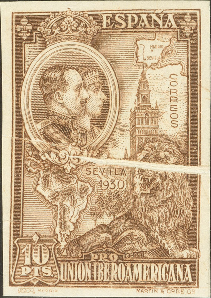 (★) 581s. 1930. 10 pts castaño. SIN DENTAR y FUELLE DE PAPEL. MAGNIFICO Y RARO.