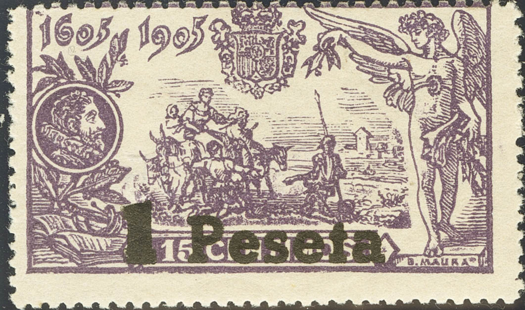 ★★ 762hpa. 1938. 1 pts sobre 15 cts violeta. (NºA033855). Sobrecarga 1 PESETA, omitido el resto de la sobrecarga. MAGNIFICO Y RARO. Edifil 2020: 235 Euros
