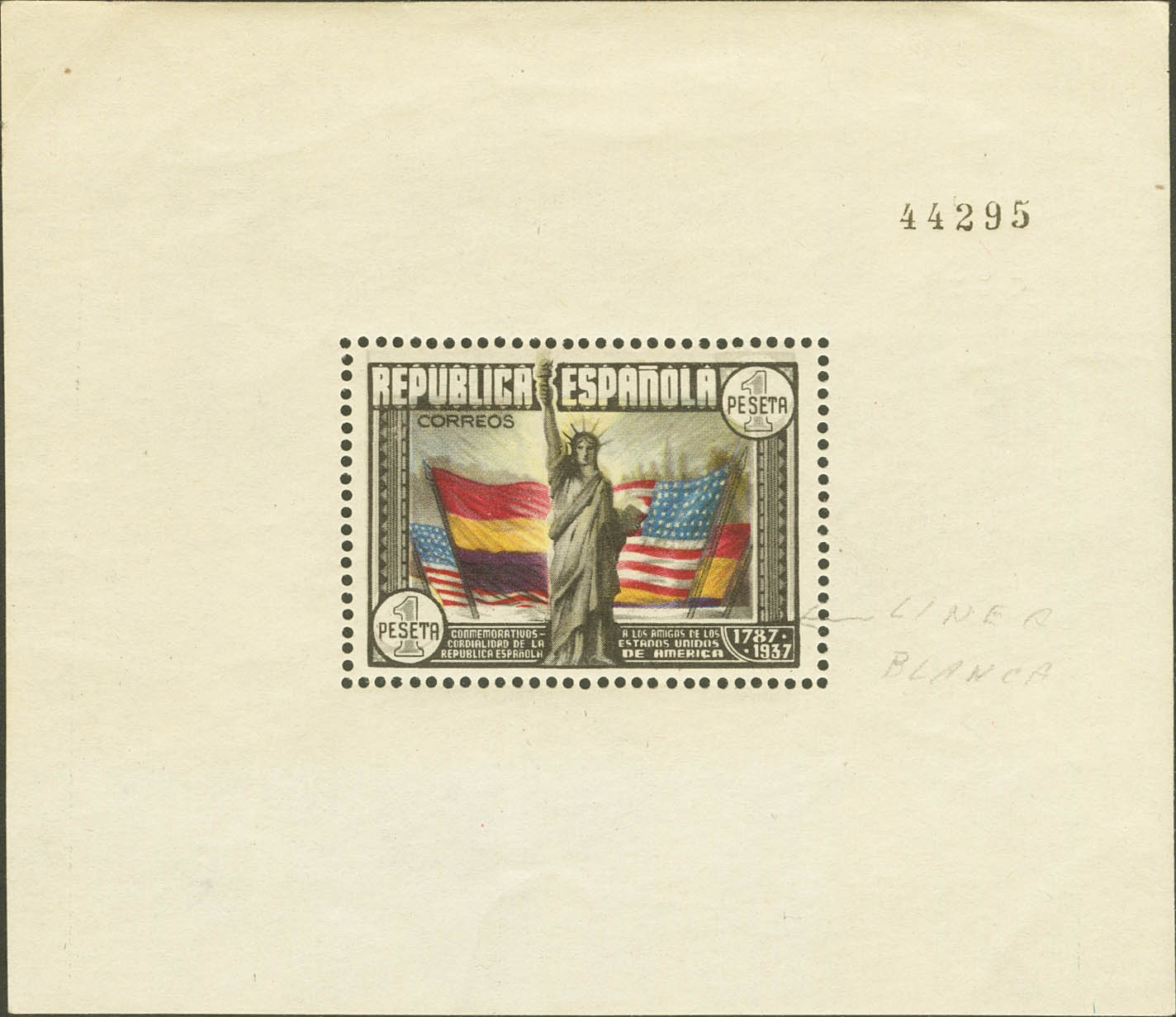 ★★ 764. 1938. Hoja bloque. FONDO DESAJUSTADO. MAGNIFICA. Edifil 2023: +50 Euros