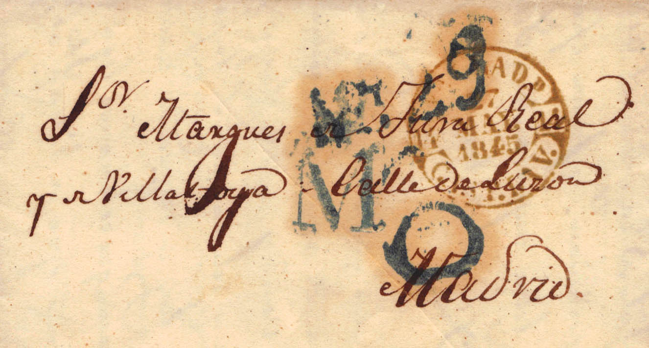 1845. VALLADOLID a MADRID. Baeza VALLADD / CAST.LA V., en verde. MAGNIFICA.