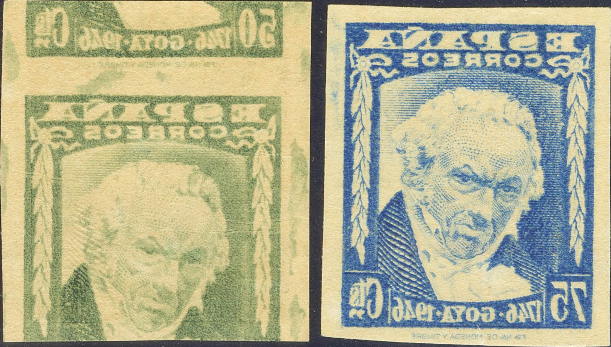★★/★ 1006ics, 1007ics. 1946. 50 cts verde y 75 cts azul. CALCADOS EN EL REVERSO (sin dentar). MAGNIFICOS Y RAROS, EL 75 CTS NO RESEÑADO.