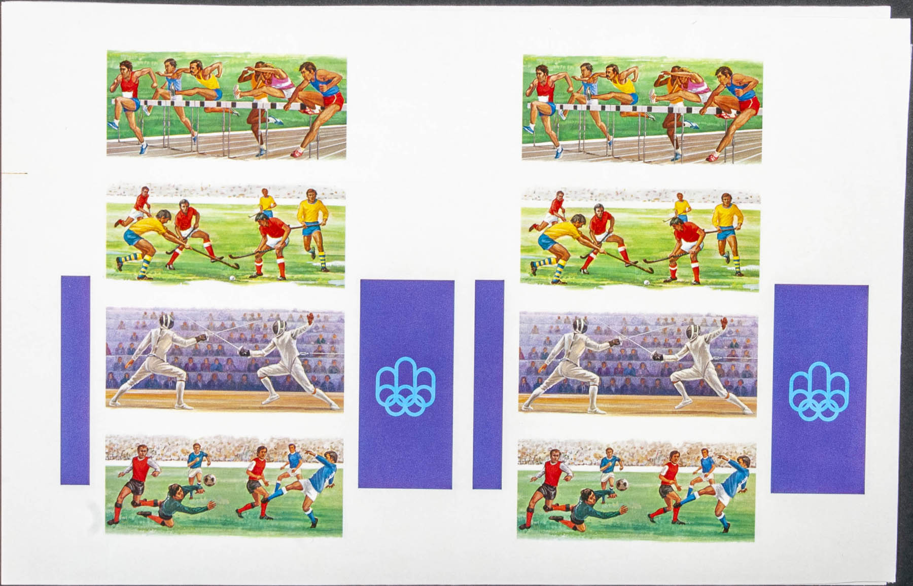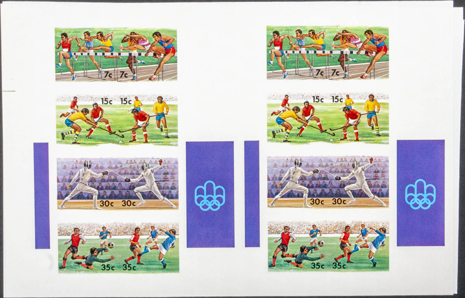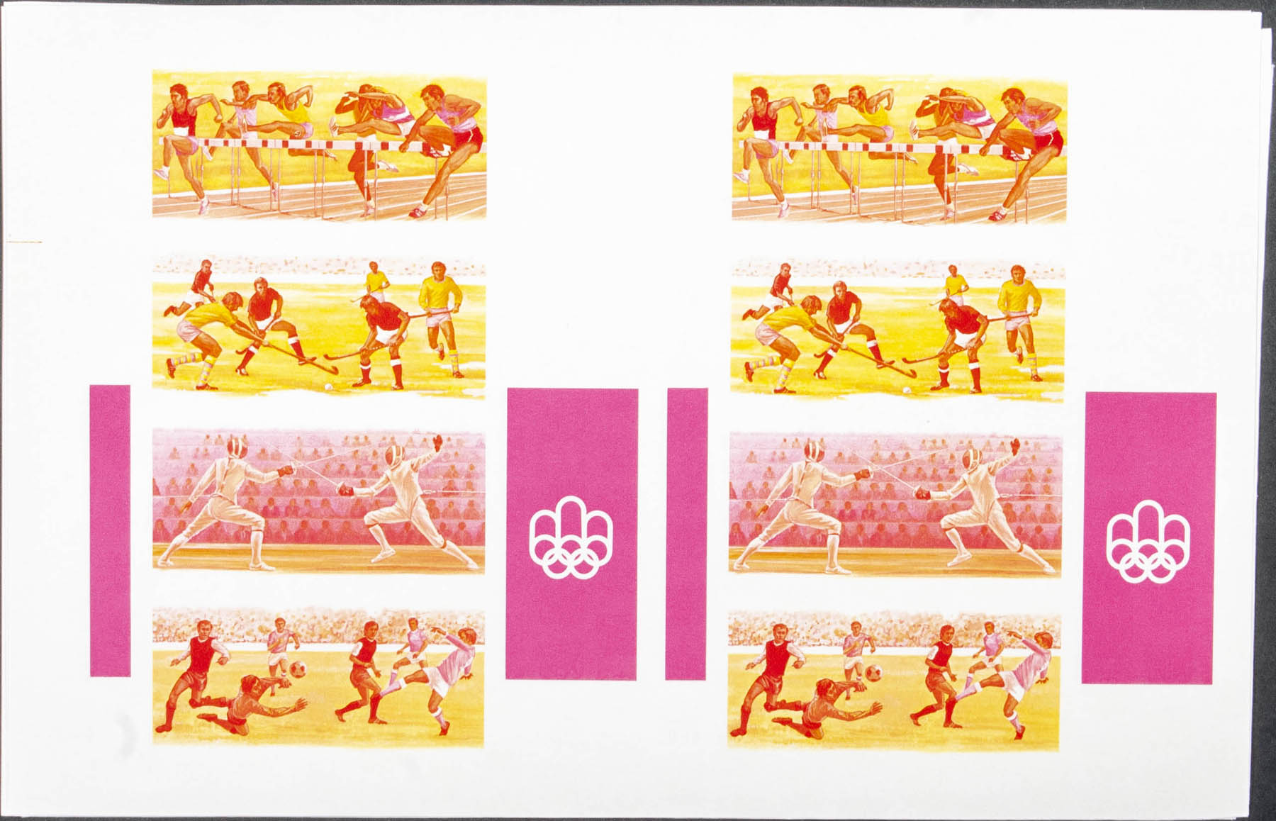 ★★Yvert B59. 1976. Olympic Games Montreal 76. Souvenir sheet. Group of progressive plate proof of the sheet.
