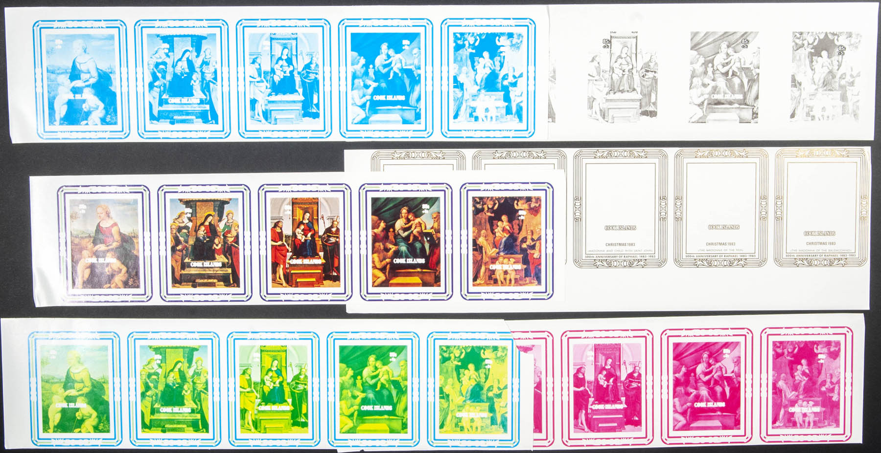 ★★Yvert B138/42. 1983. Christmas. Souvenir sheet. Group of progressive plate proof of the sheet.