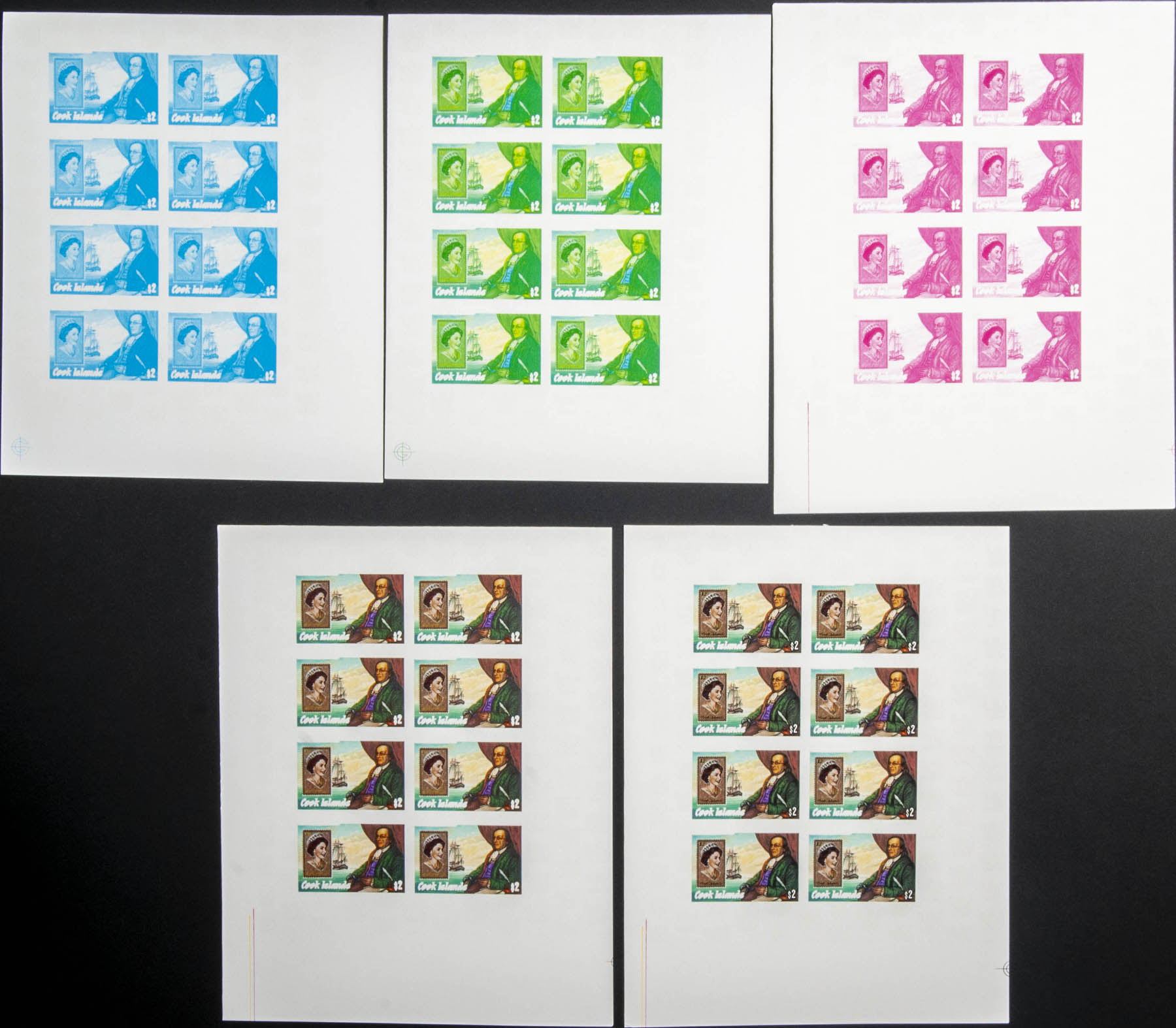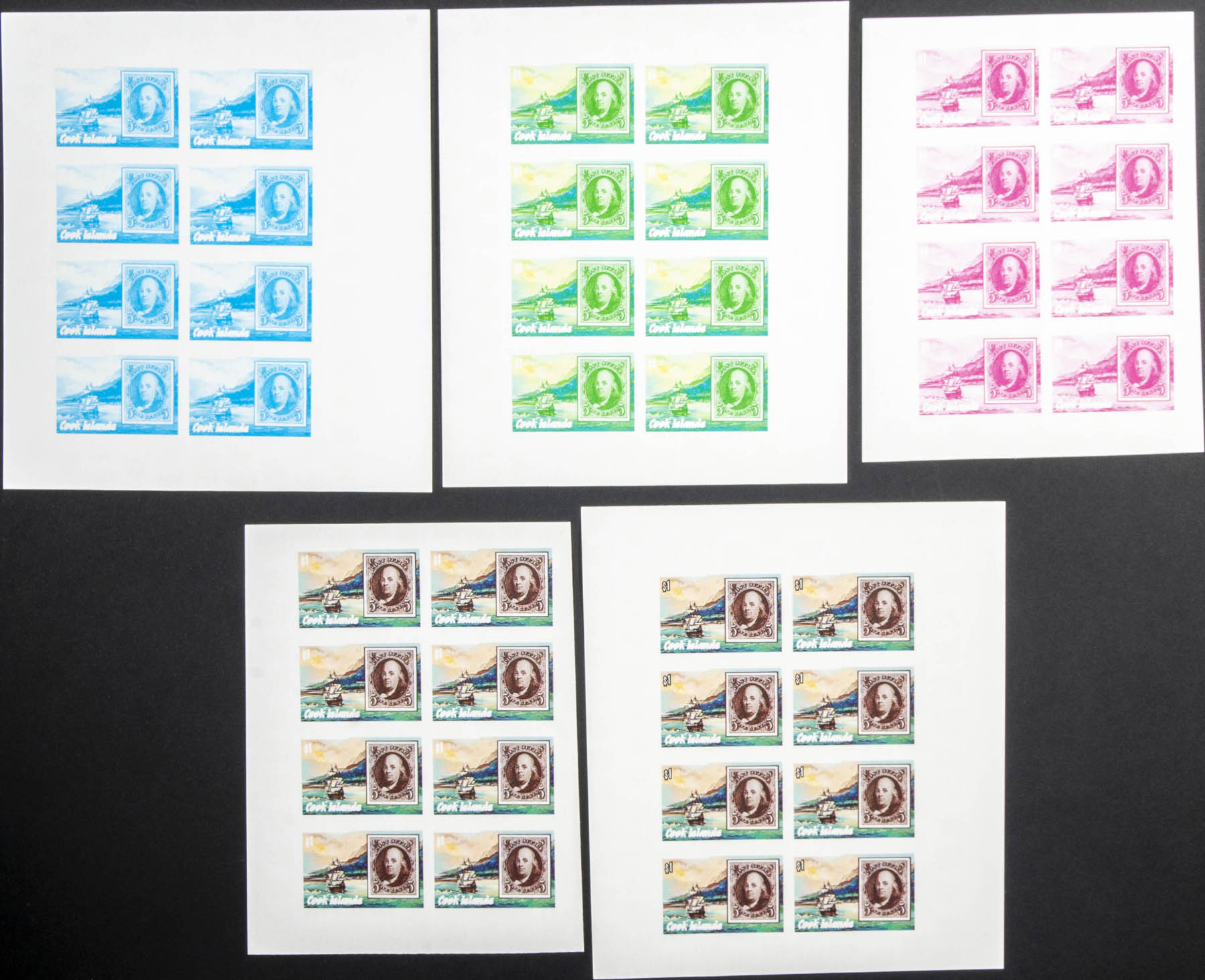 ★★Yvert 858/60. 1986. Ameripex. Group of progressive plate proofs of the set.