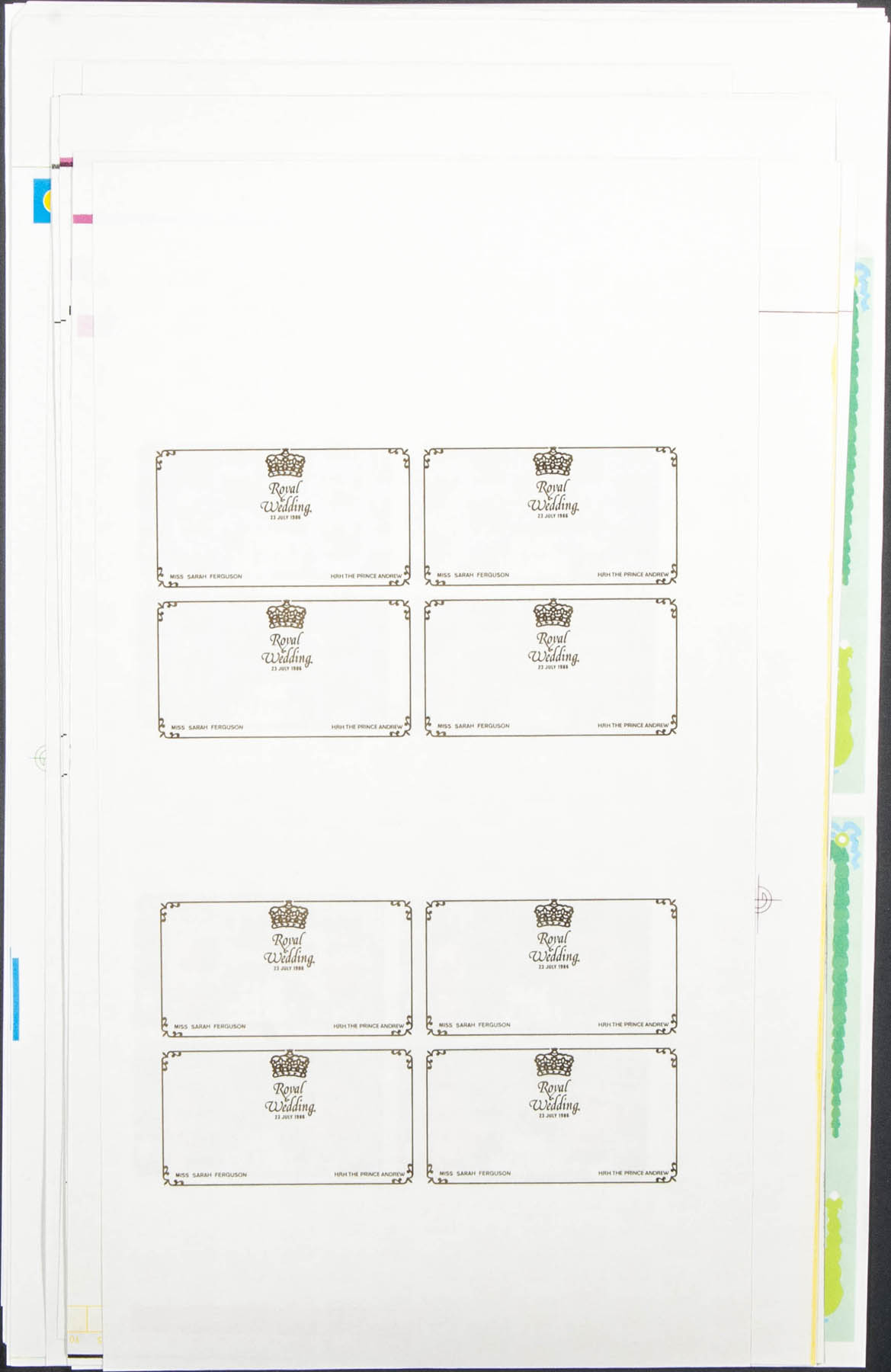 ★★Yvert 864/66. 1986. Andrew and Sarah wedding. Group of progressive plate proofs of the set.