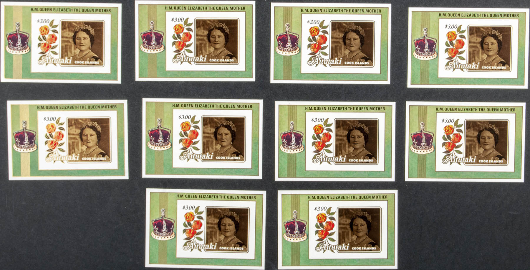 ★★Yvert B56. 1985. Queen mother 85th Anniversary. Souvenir sheet. Group of IMPERFORATED sheets.