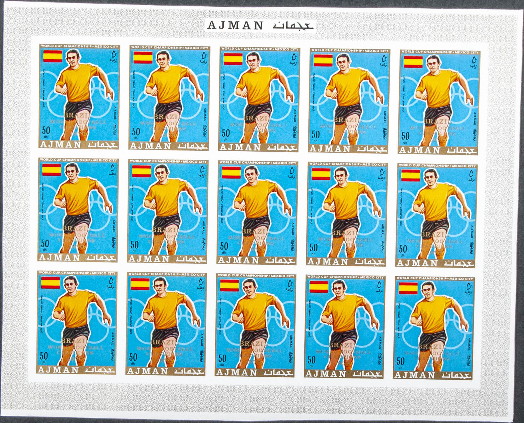 ★★ . 1970. World Cup Football Mexico. Group of complete IMPERFORATED set. (Michel: 525/30 surcharged)