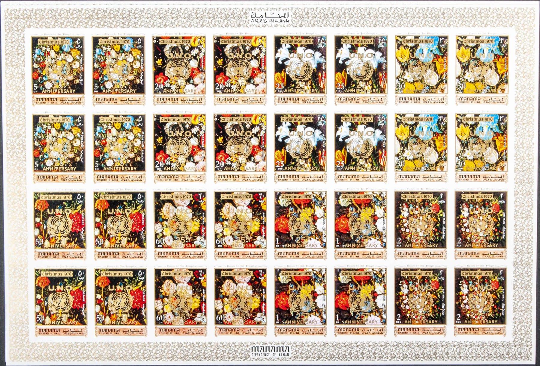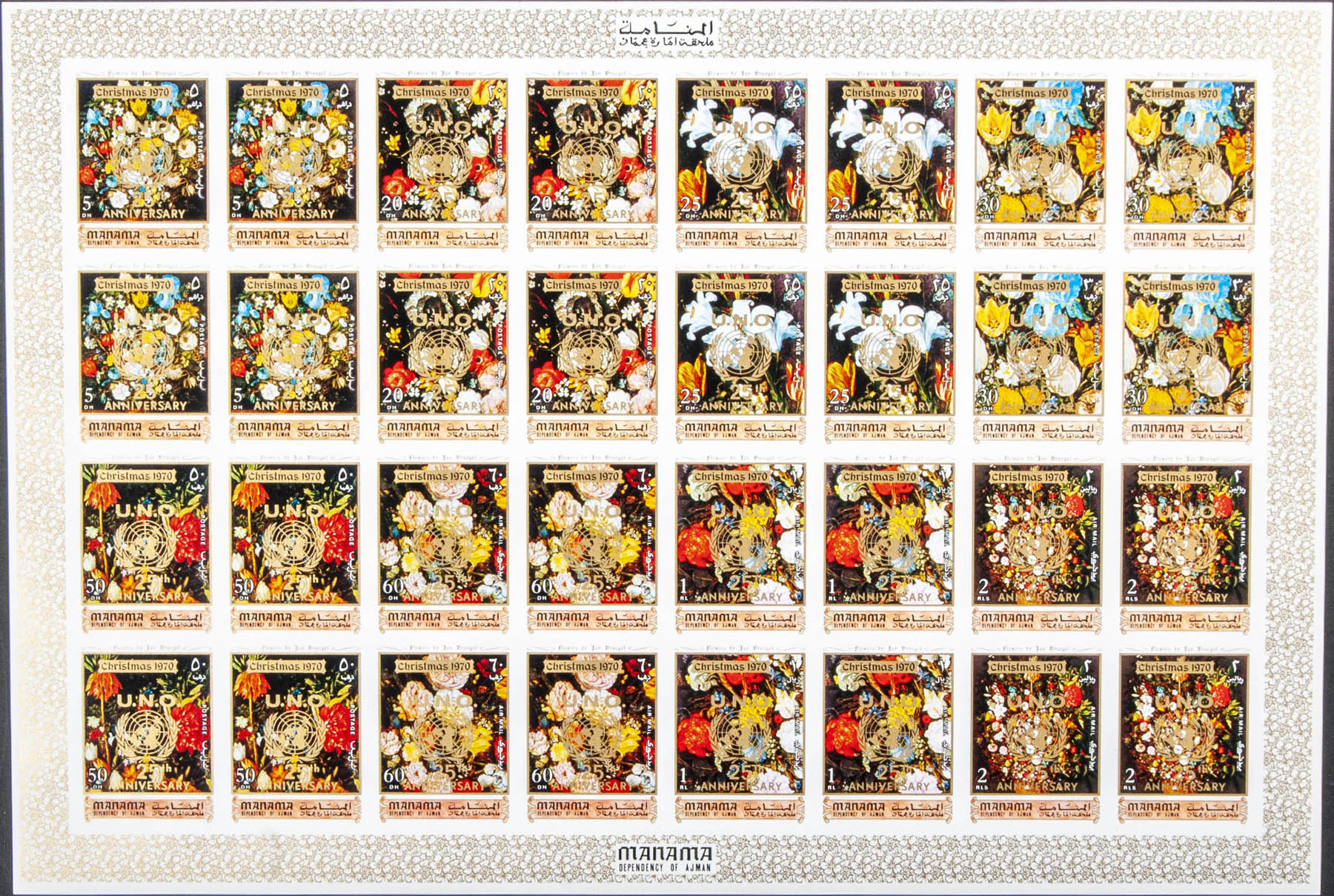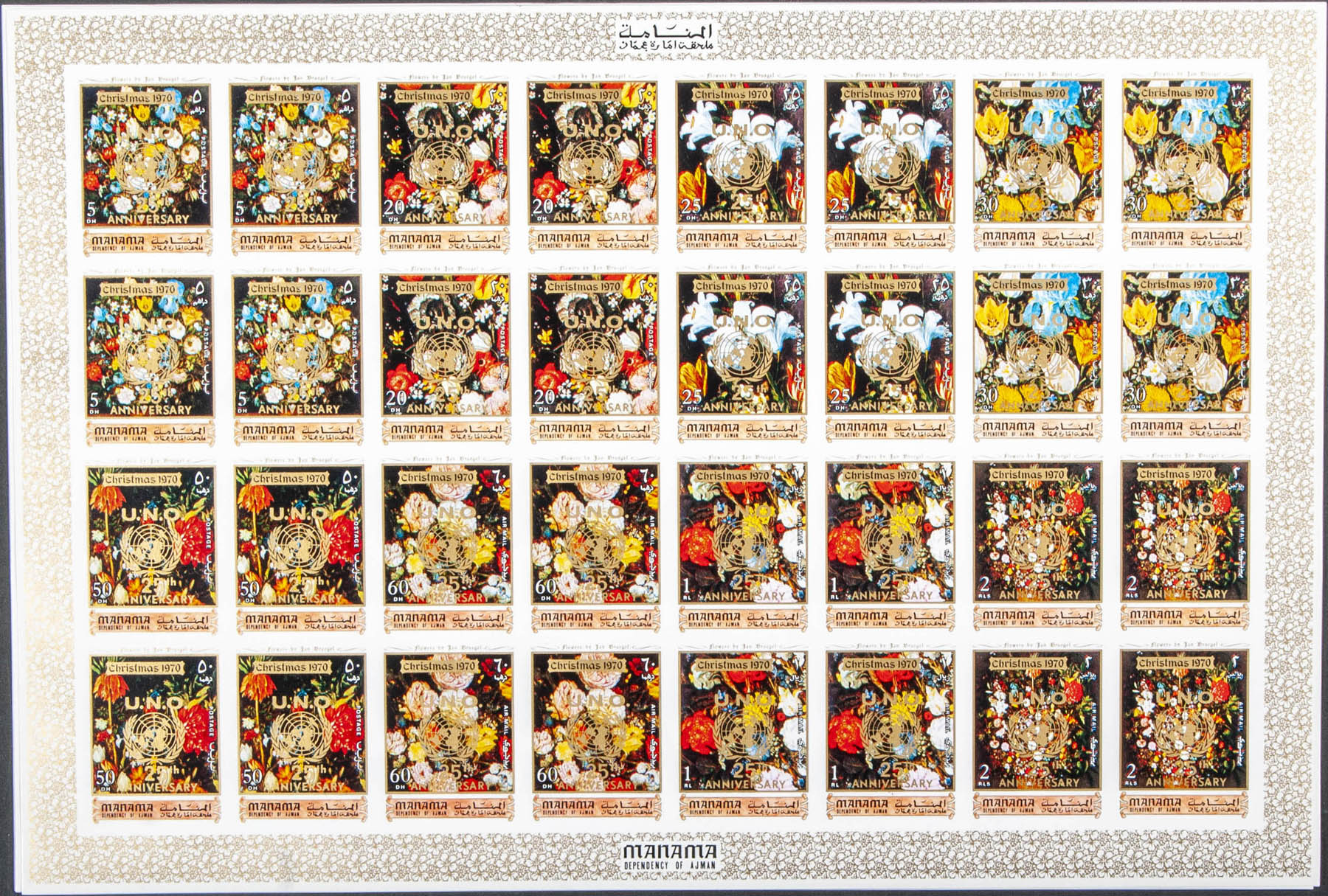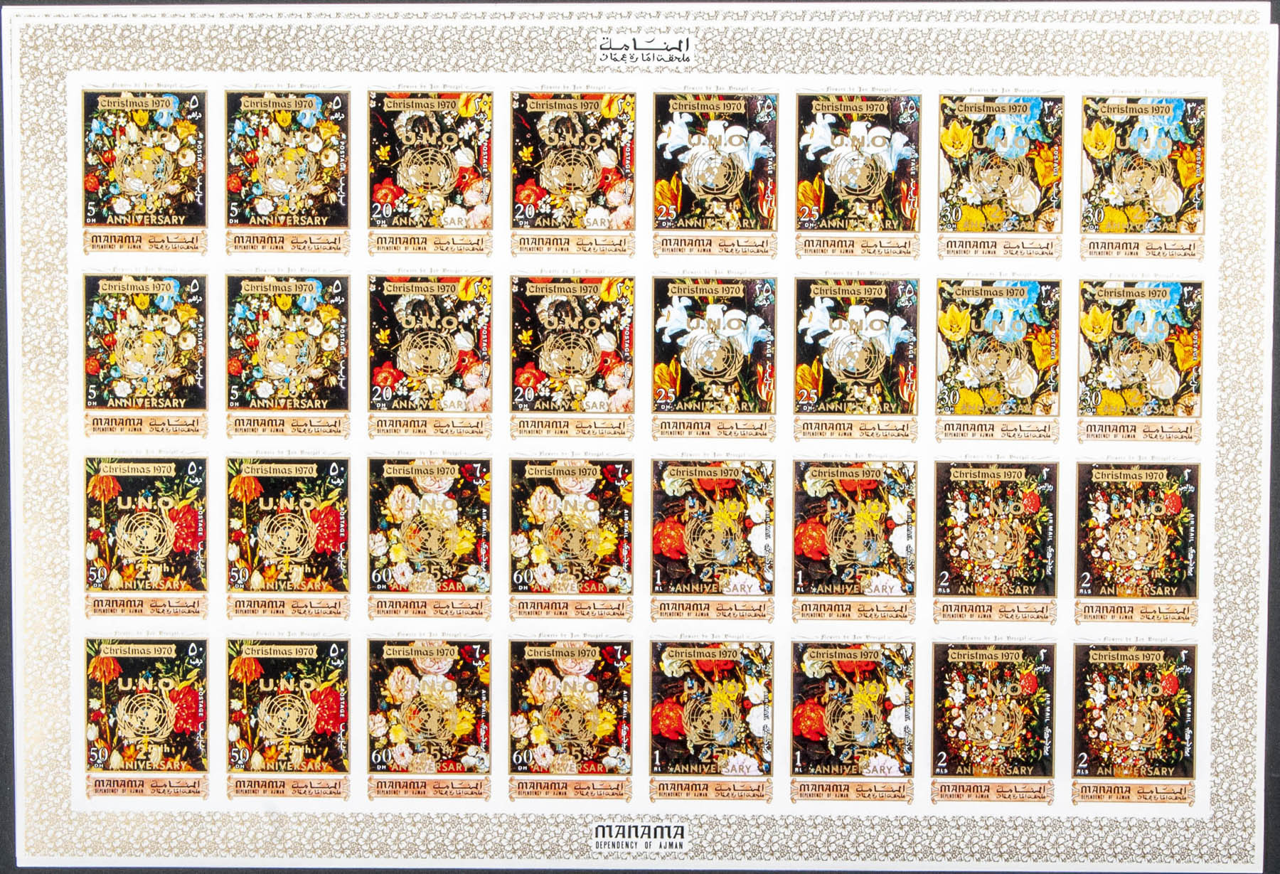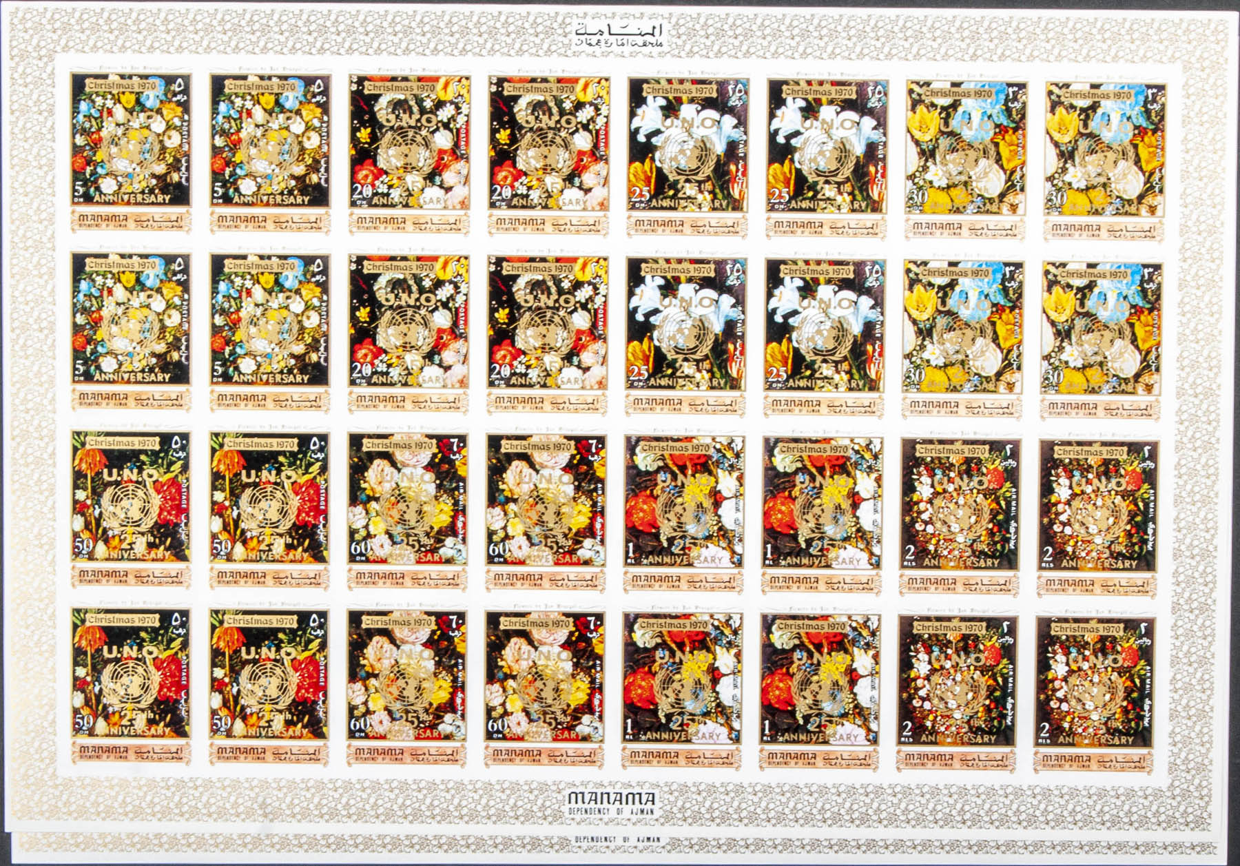 ★★ . 1970. Christmas, 25º Anniversary U.N.O. Group of complete IMPERFORATED set. (Not listed)