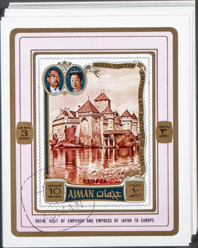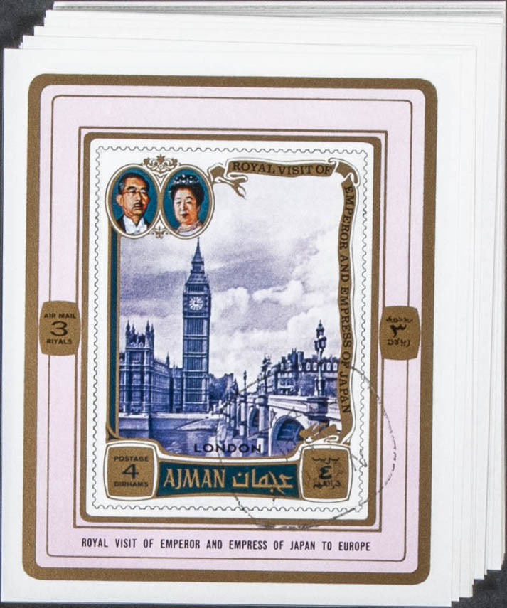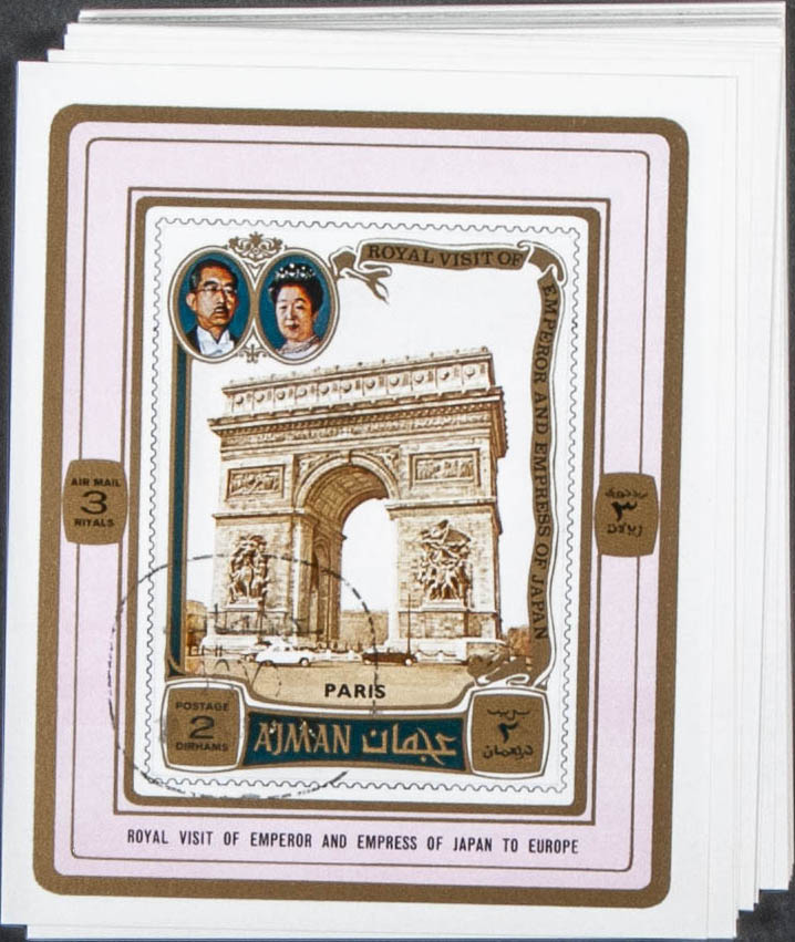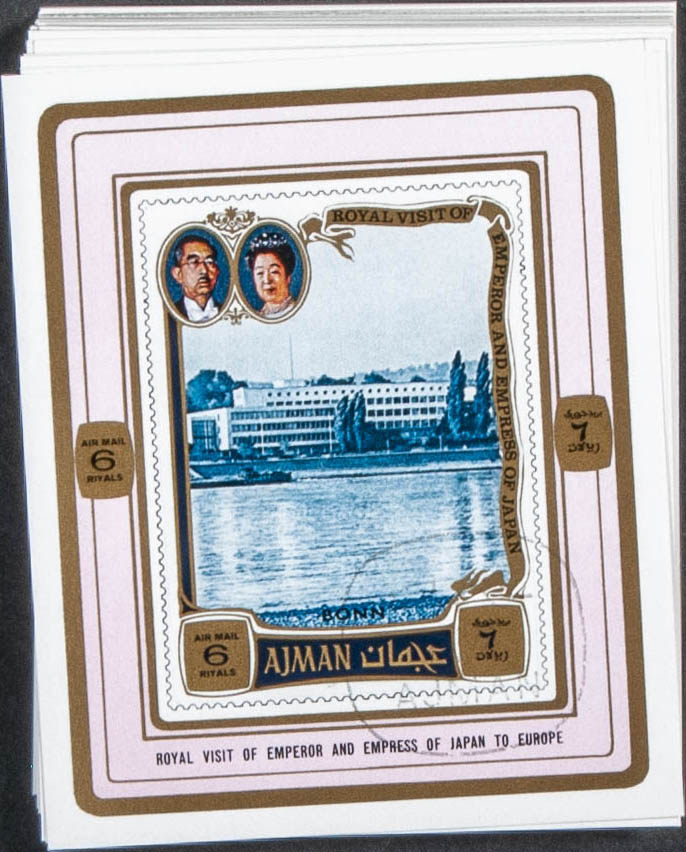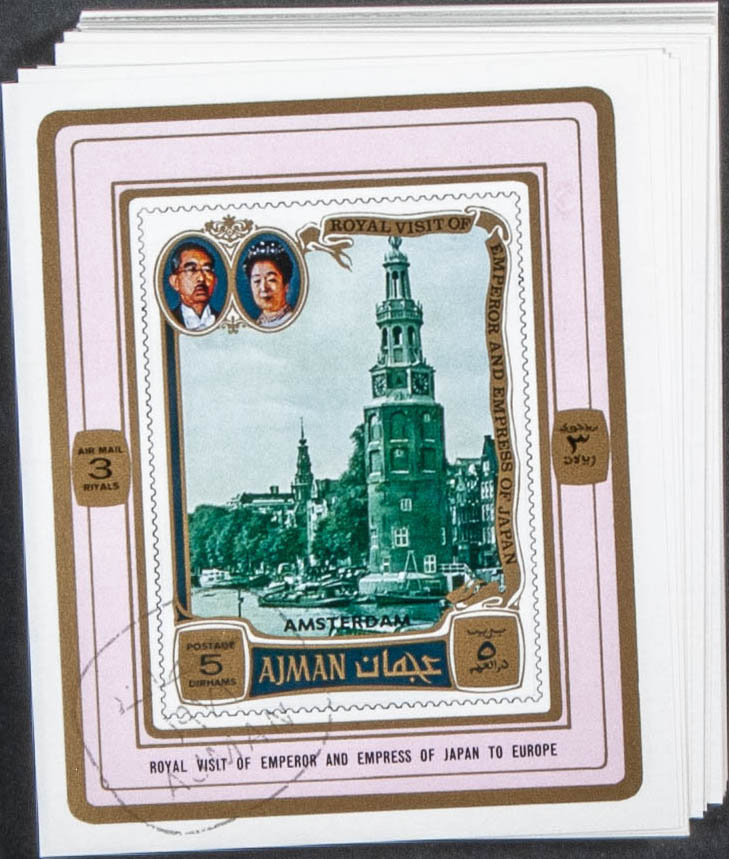 . 1971. Hirohito Europe visit. Group of complete set IMPERFORATED on individual sheets. Cancelled to order. (Michel: 1040/45)