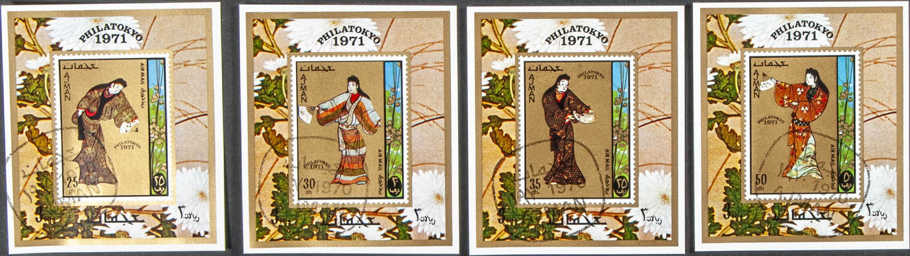 . 1971. Philatokyo. Group of complete set IMPERFORATED on individual sheets. Cancelled to order. (Michel: 670/77)