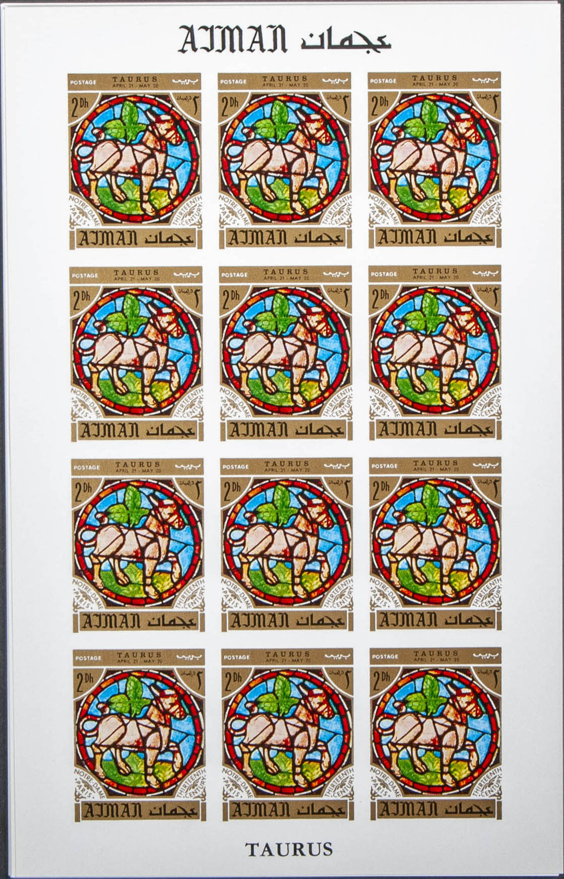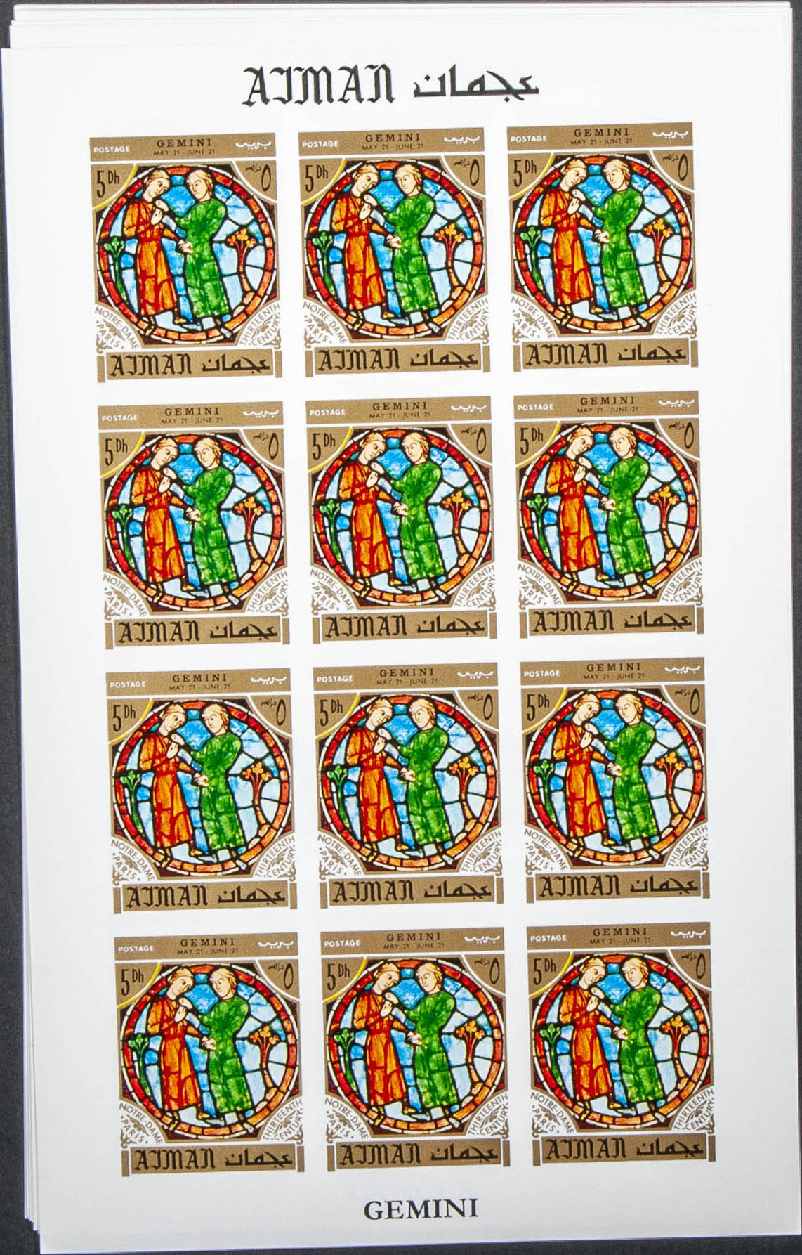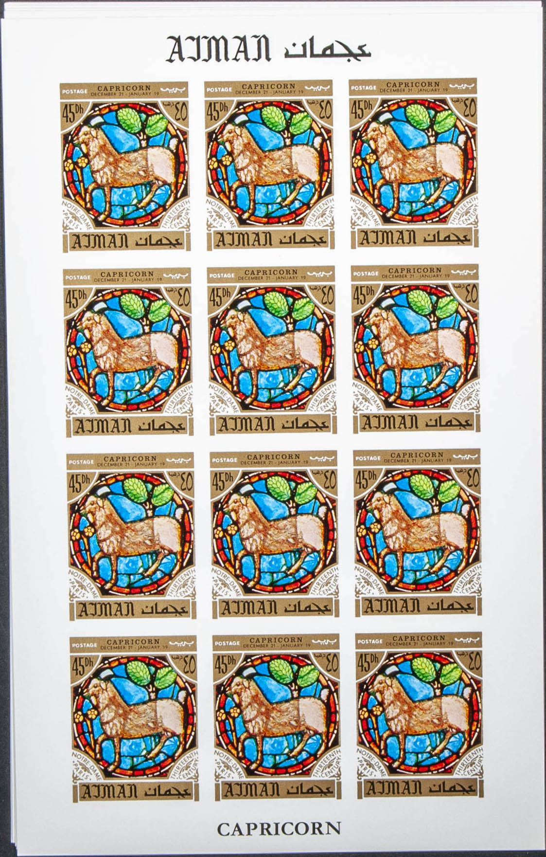★★Yvert . 1971. Zodiac-Notre Dame windows. Group of complete IMPERFORATED set. (Michel: 769/80)