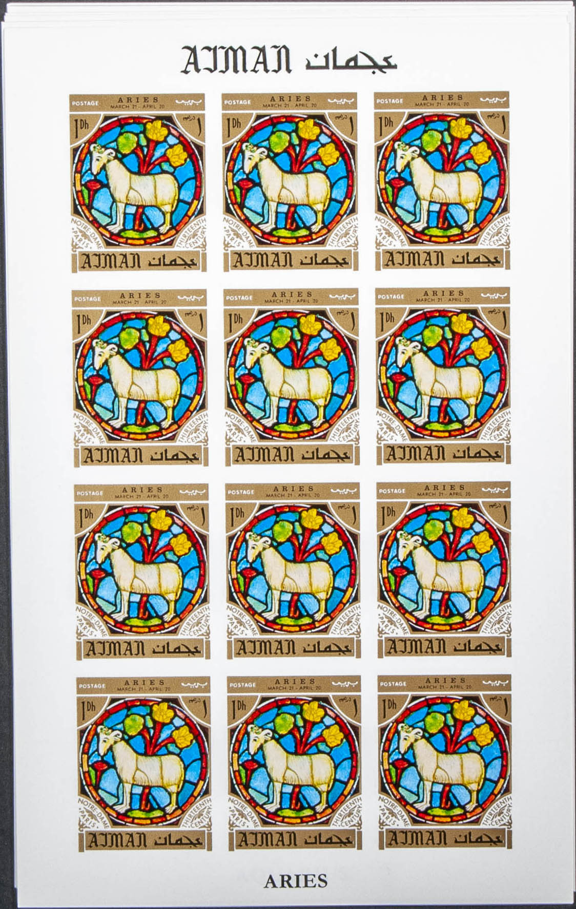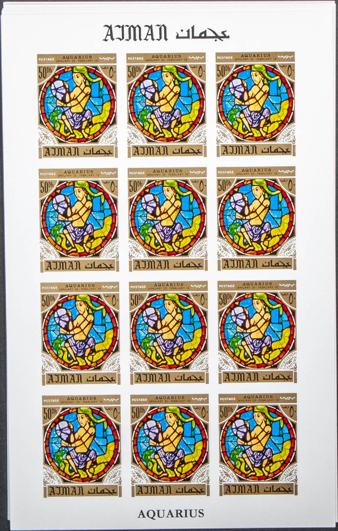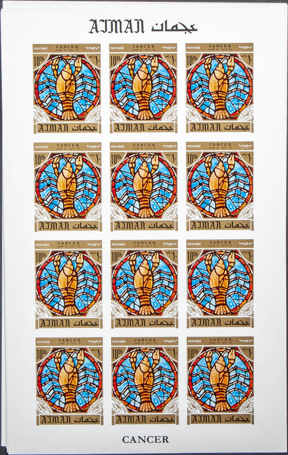 ★★Yvert . 1971. Zodiac-Notre Dame windows. Group of complete IMPERFORATED set. (Michel: 769/80)