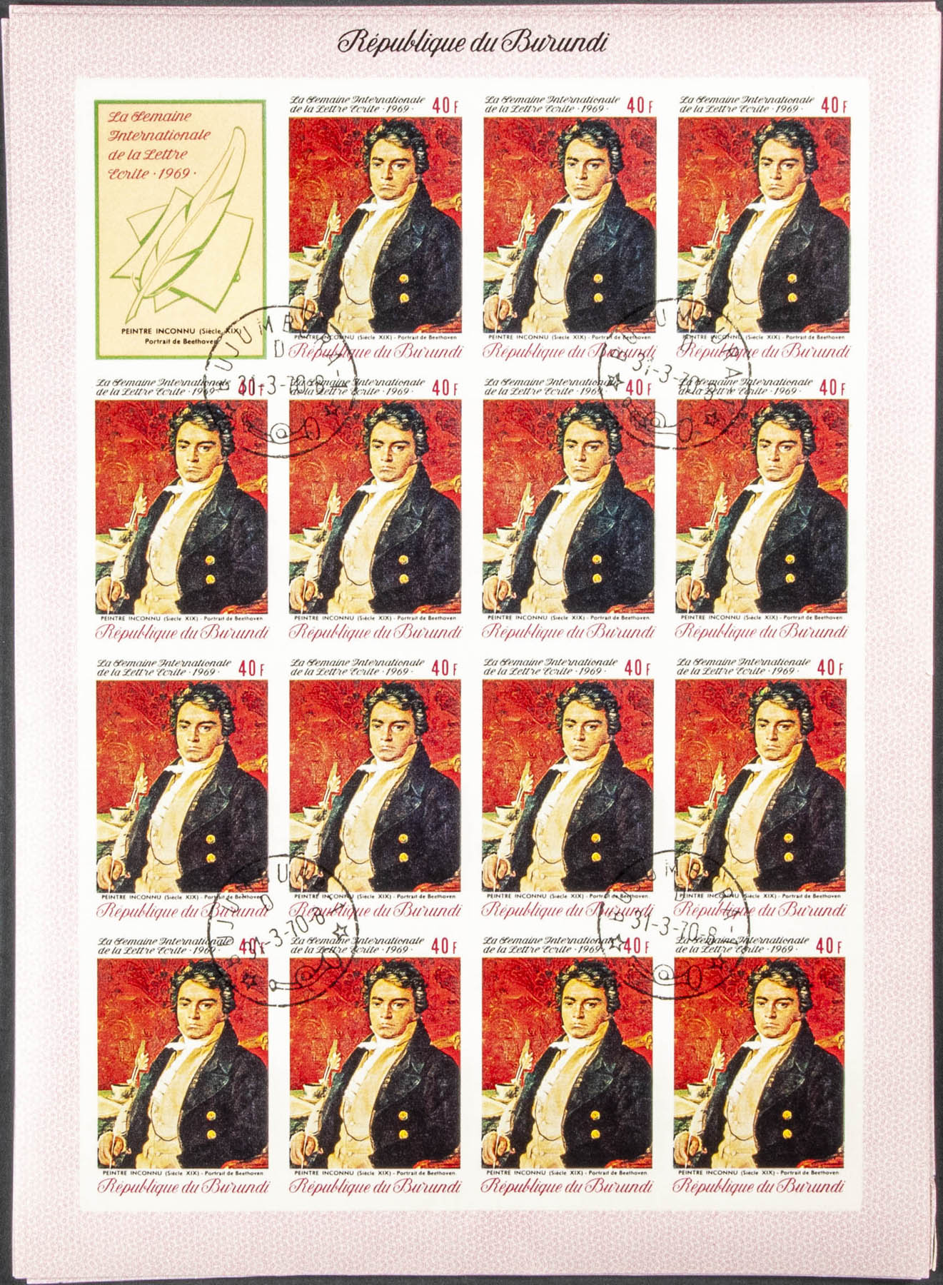 Yvert 345/49. 1969. Letter writing week. Group of complete IMPERFORATED set. Cancelled to order.