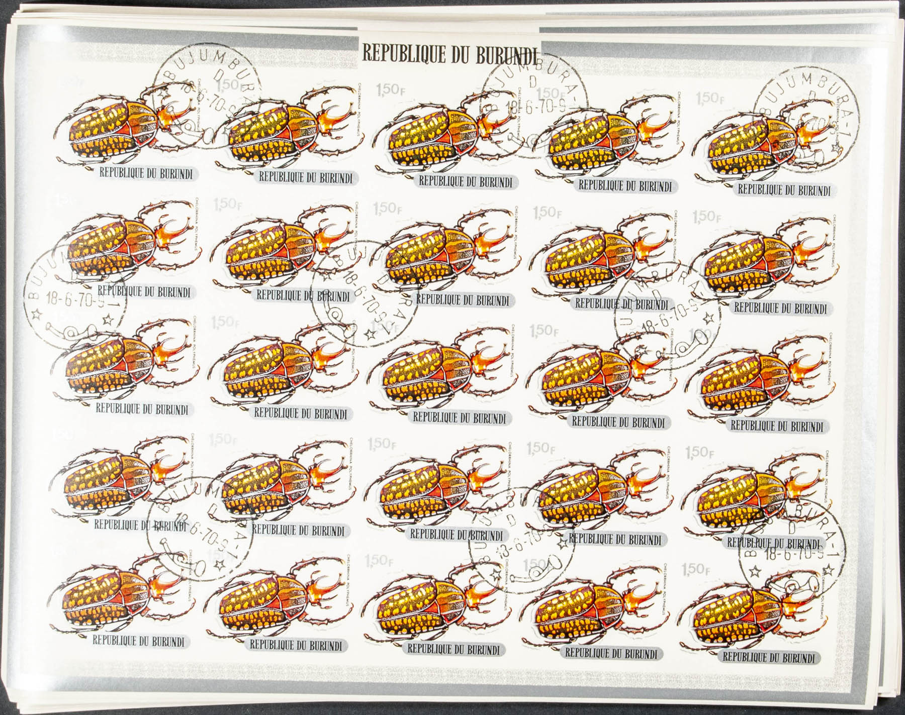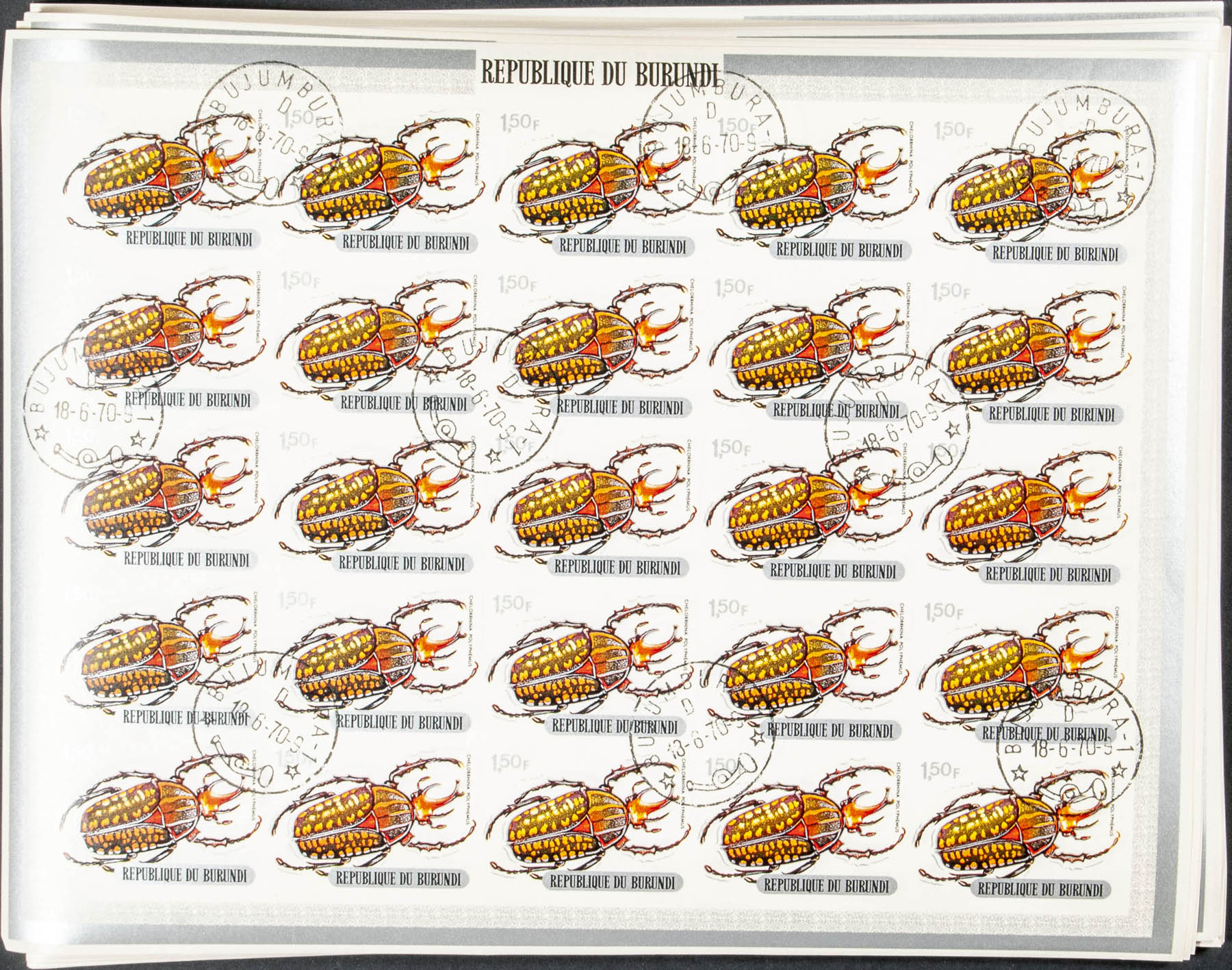 Yvert 350/52C + A. 1970. Insects. Group of complete IMPERFORATED set. Cancelled to order.