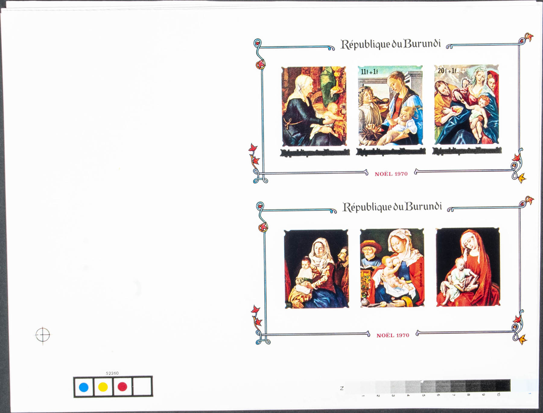 ★★Yvert B43/44. 1970. Christmas. Souvenir sheet. Progressive plate proof of the sheet.