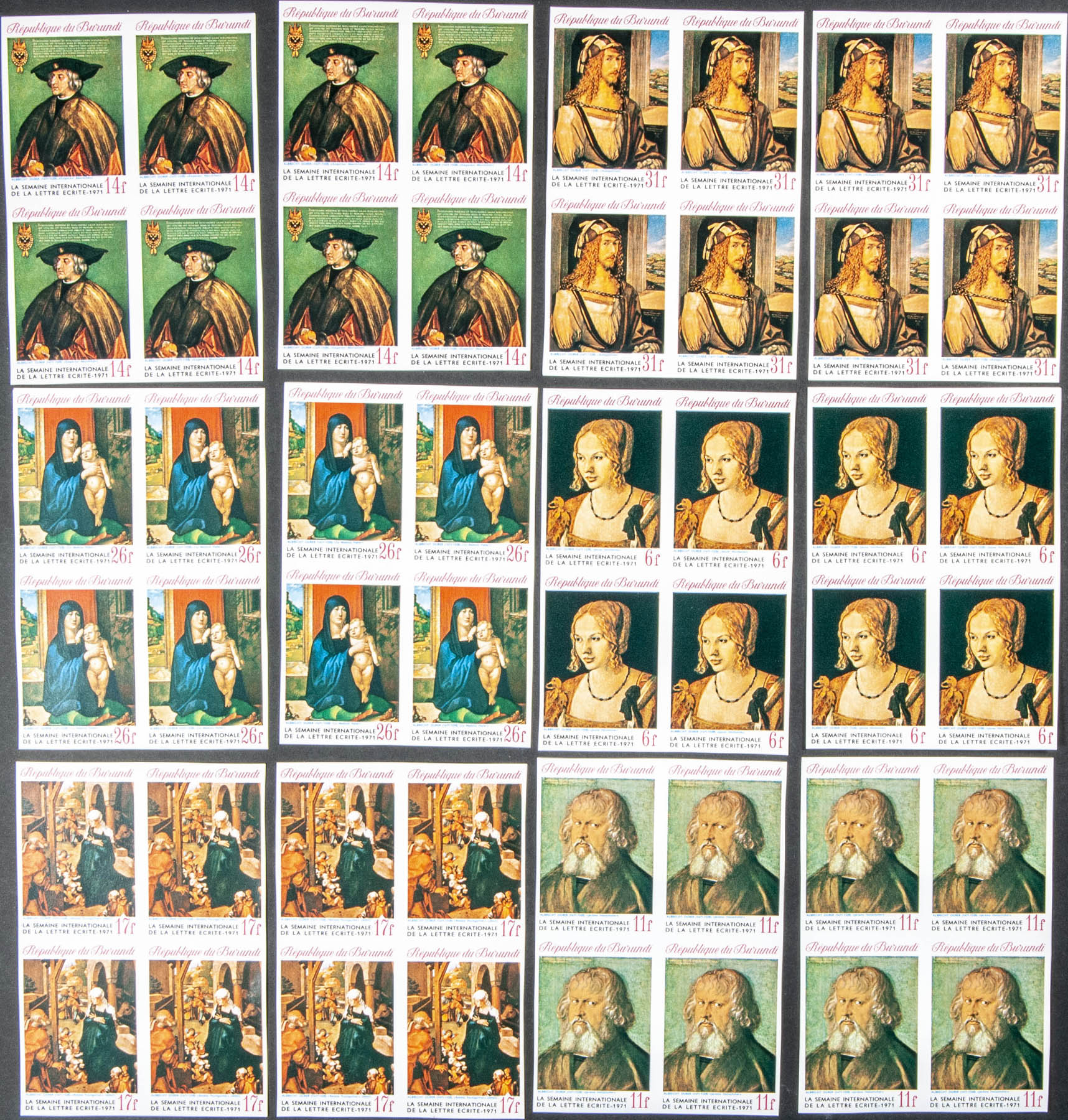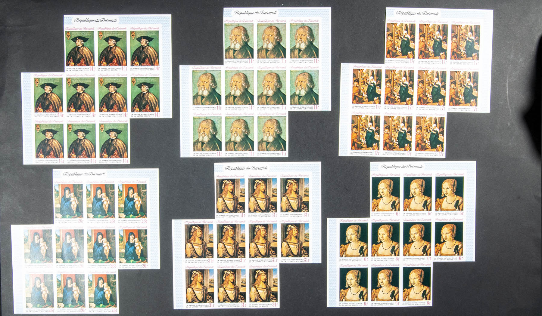★★Yvert 461/66. 1971. Durer paintings. Group of complete IMPERFORATED set.