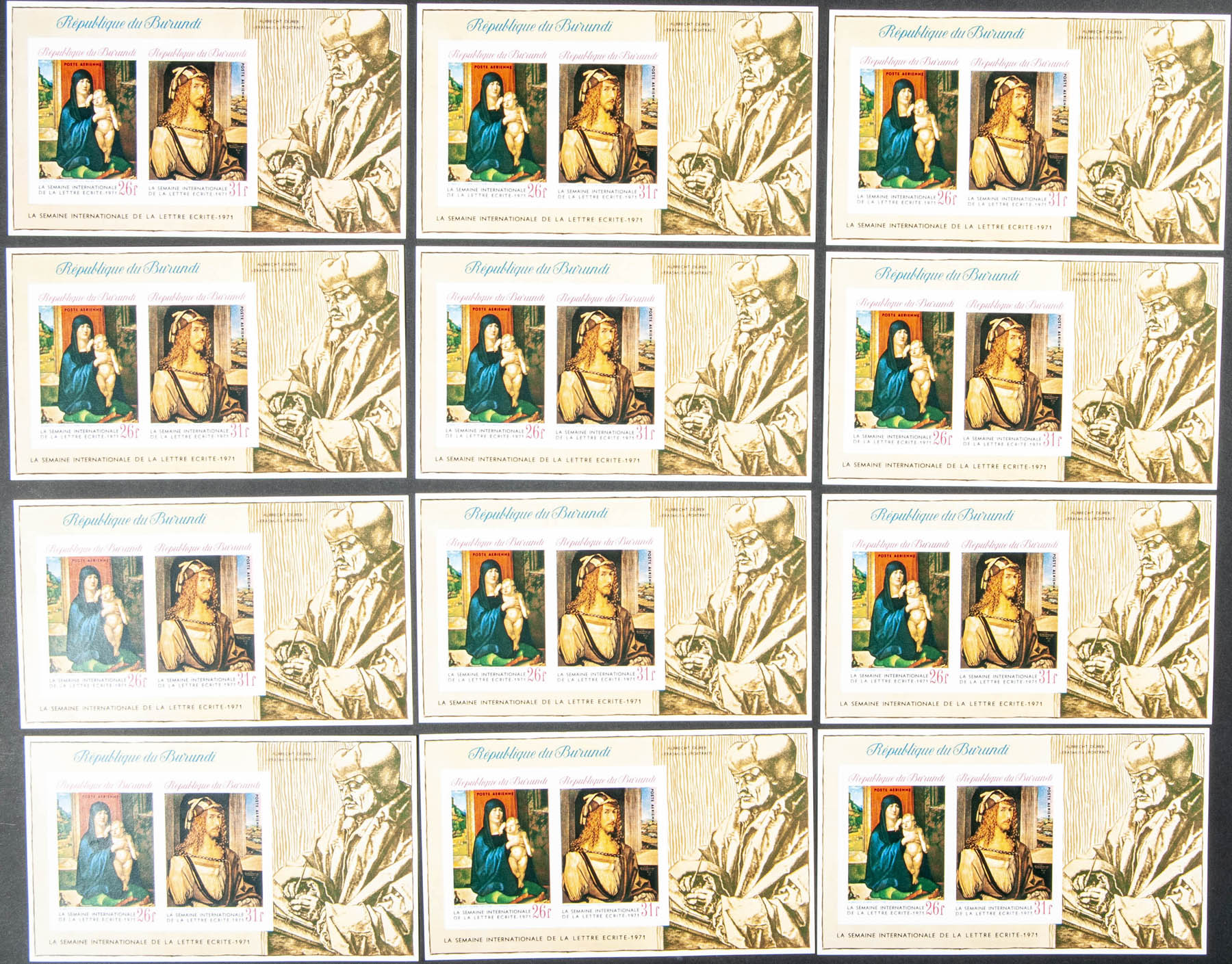★★Yvert B47. 1971. Durer. Souvenir sheet. Group of IMPERFORATED sheets.