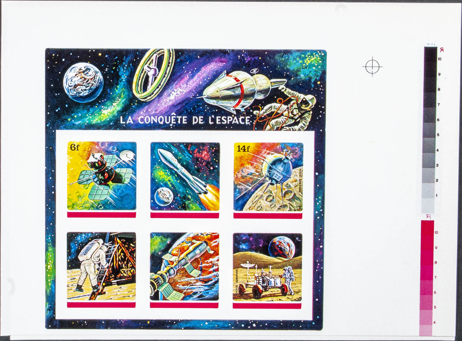 ★★Yvert B55. 1972. Space exploration. Souvenir sheet. Progressive plate proof of the sheet.